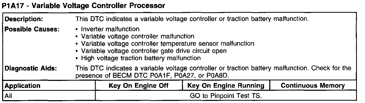 NOTE 4: Clear the transaxle control module (TCM) continuous DTCs. Carry out a TCM key ON engine OFF (KOEO) on demand self-test. If DTC POA92 is present again, check for damaged or seized engine, and install a new transaxle. If the DTC is not present, concern can not be duplicated or identified at this time. Go to PPT Z in Pinpoint Tests for intermittent diagnostics. Test Z: Intermittent