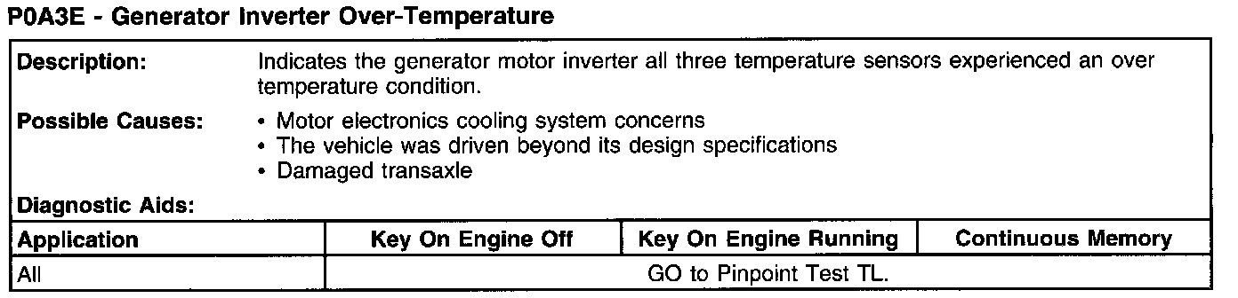 NOTE 4: Clear the transaxle control module (TCM) continuous DTCs. Carry out a TCM key ON engine OFF (KOEO) on demand self-test. If DTC POA92 is present again, check for damaged or seized engine, and install a new transaxle. If the DTC is not present, concern can not be duplicated or identified at this time. Go to PPT Z in Pinpoint Tests for intermittent diagnostics. Test Z: Intermittent