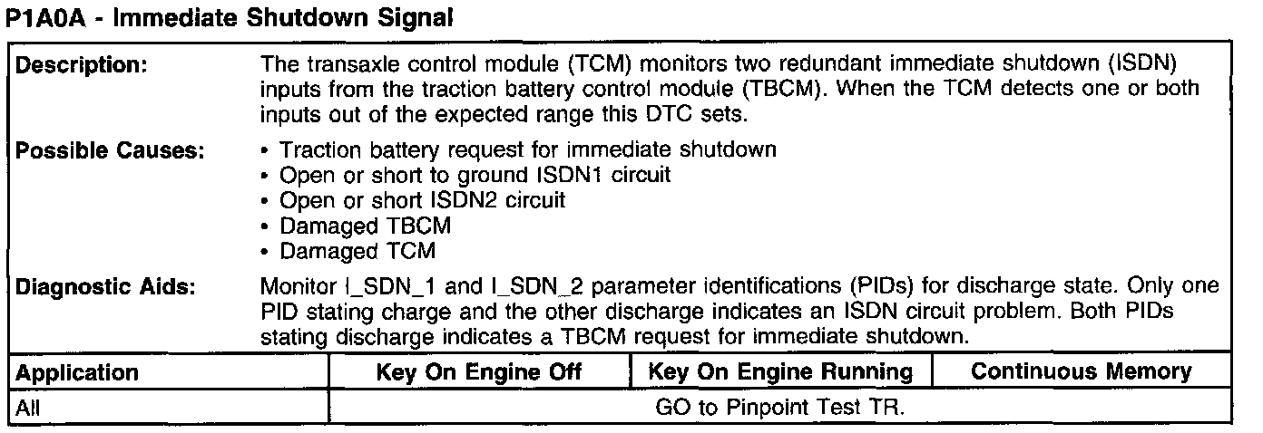 NOTE 4: Clear the transaxle control module (TCM) continuous DTCs. Carry out a TCM key ON engine OFF (KOEO) on demand self-test. If DTC POA92 is present again, check for damaged or seized engine, and install a new transaxle. If the DTC is not present, concern can not be duplicated or identified at this time. Go to PPT Z in Pinpoint Tests for intermittent diagnostics. Test Z: Intermittent