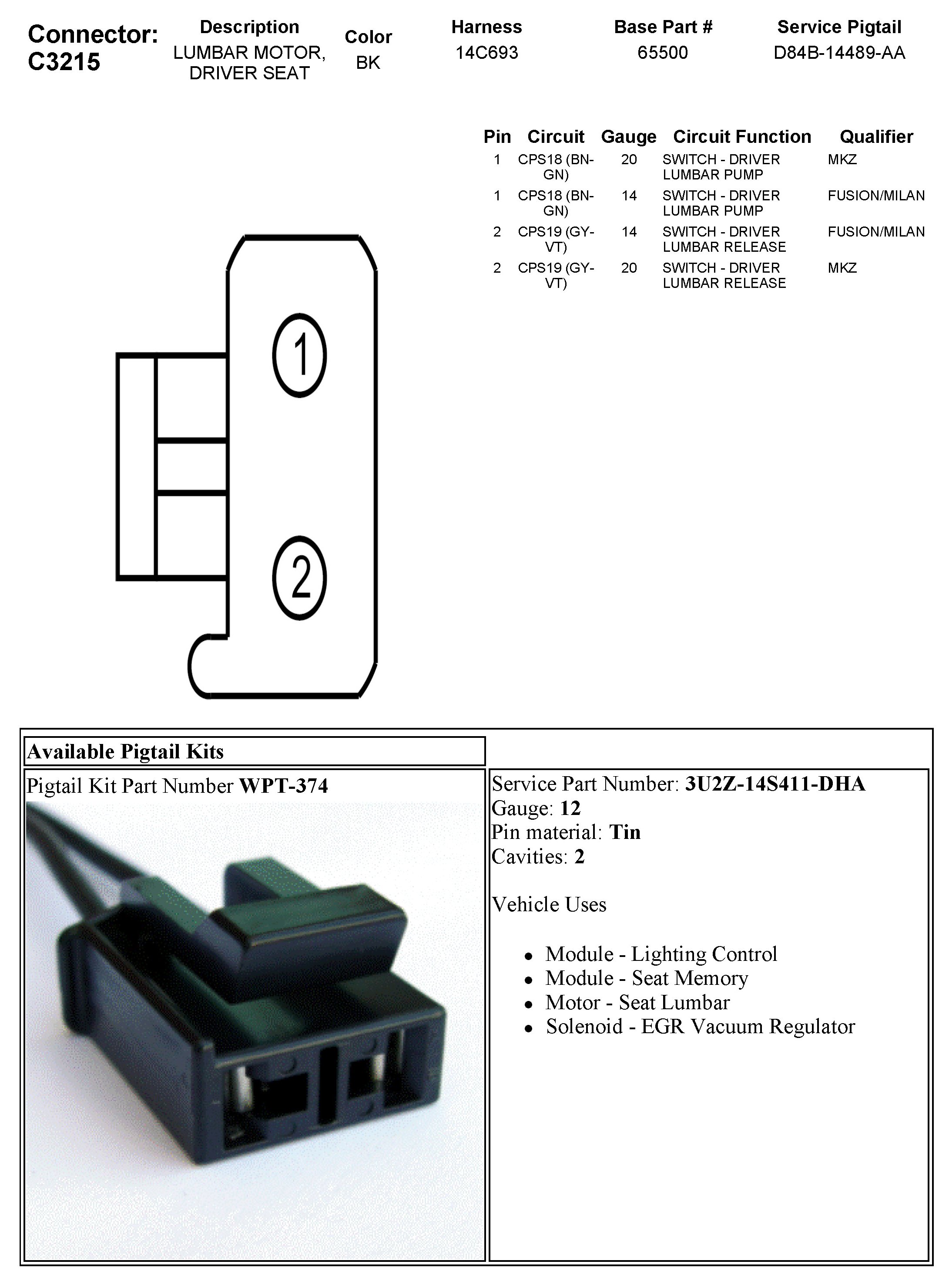 C3215 Lumbar Motor, Driver Seat