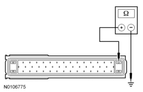 - Measure the resistance between ABS module C135-47, circuit GD121 (BK/YE), harness side and ground.