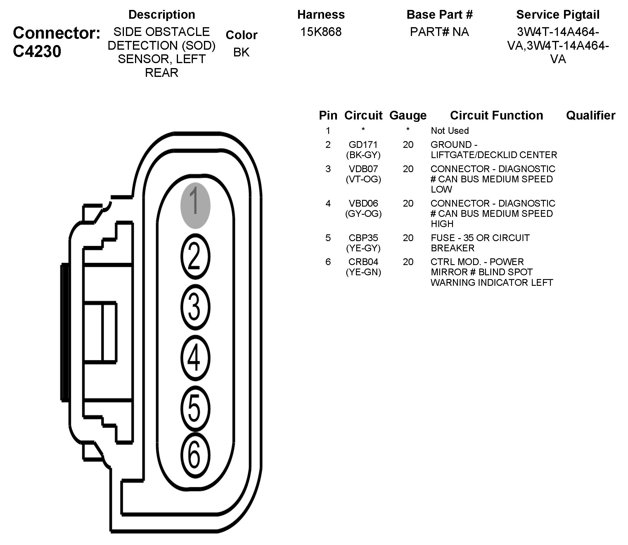 C4230 Side Obstacle Detection (SOD) Sensor, Left Rear