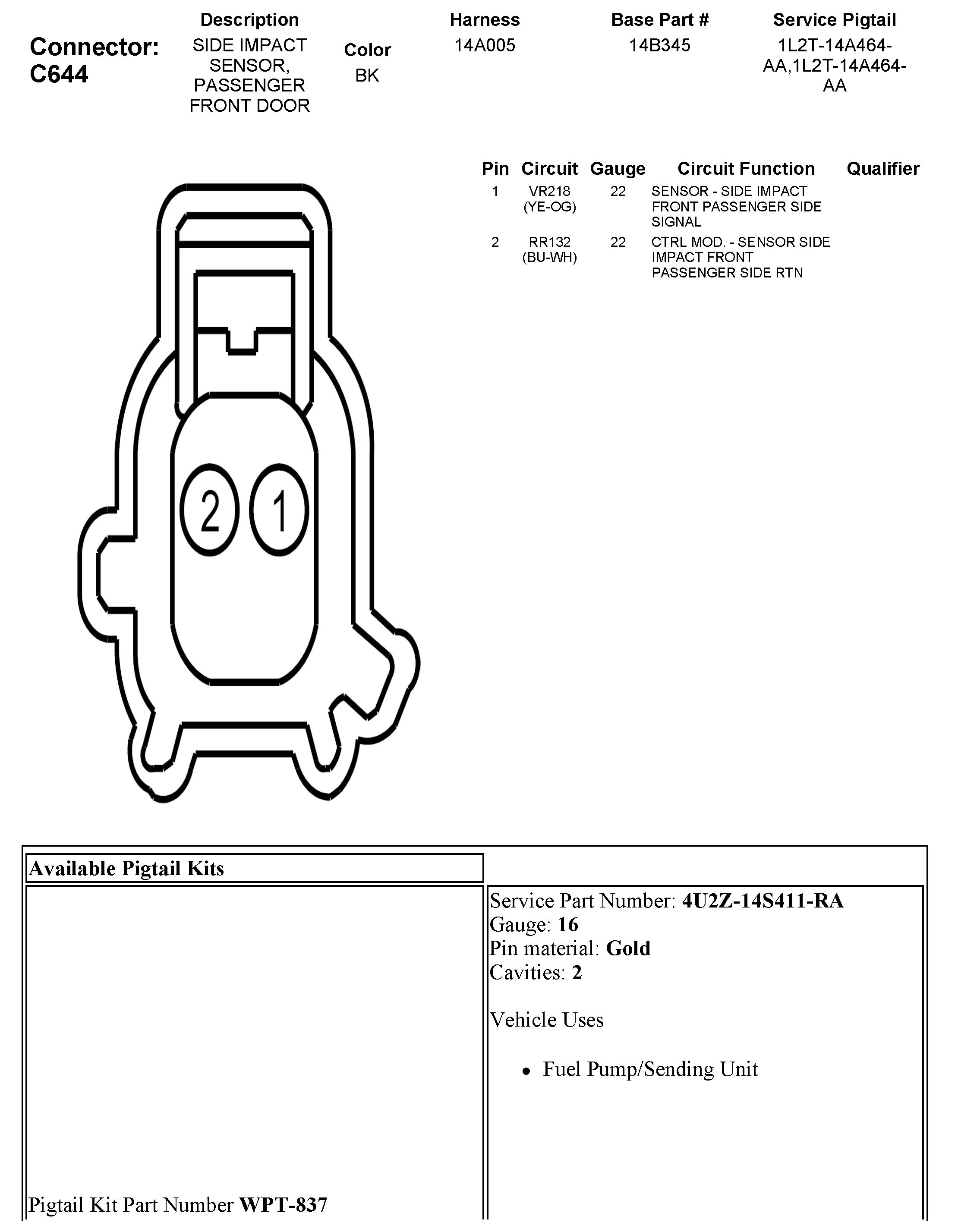 C644 Side Impact Sensor, Passenger Front Door