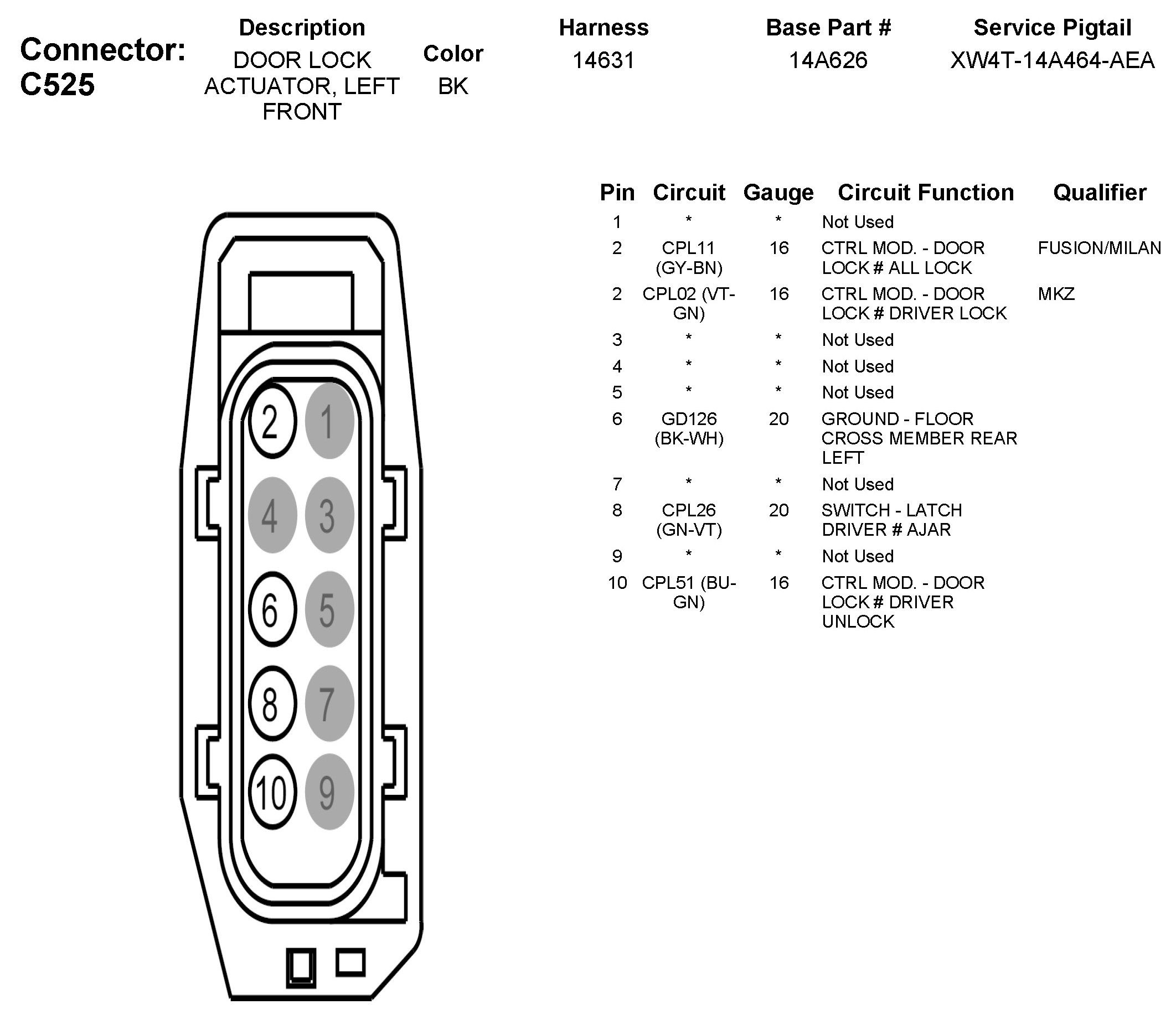 C525 Door Lock Actuator, Left Front