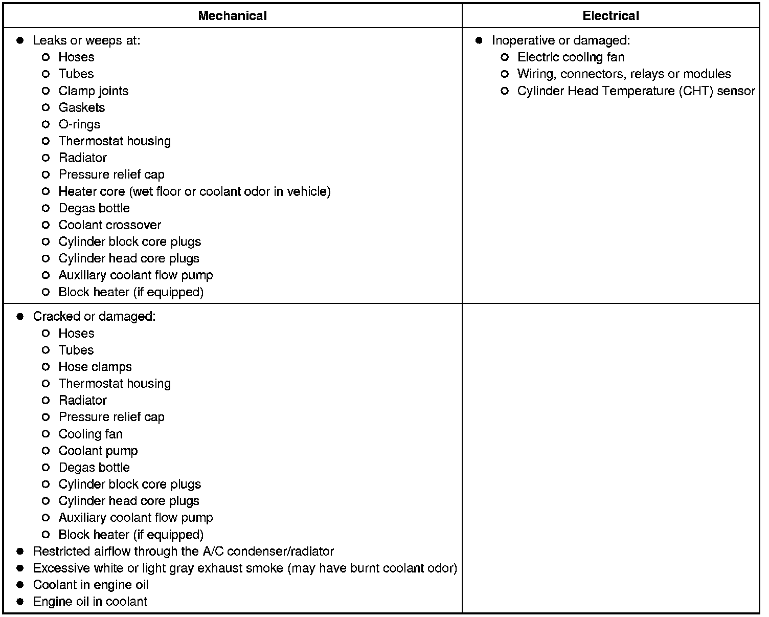 - An iridescent sheen on top of the coolant could indicate a trace of oil is entering the system. For information on engine diagnosis, refer to Engine System - General Information Testing and Inspection.
