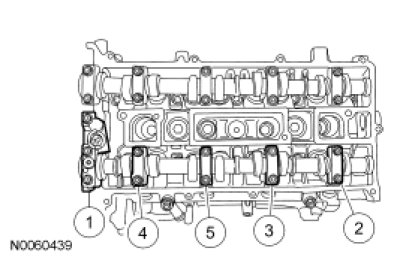 - Stage 1: Tighten the intake camshaft bearing cap bolts until finger-tight.