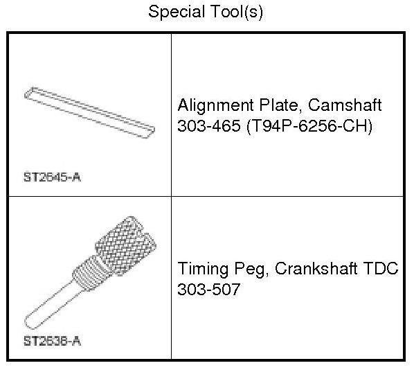 NOTE: The camshaft timing slots are offset. If the Camshaft Alignment Plate cannot be installed, rotate the crankshaft one complete revolution clockwise to correctly position the camshafts.