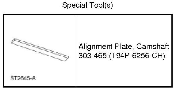 NOTICE: Do not loosen or remove the crankshaft pulley bolt without first installing the special tools as instructed in this procedure. The crankshaft pulley and the crankshaft timing sprocket are not keyed to the crankshaft. The crankshaft, the crankshaft sprocket and the pulley are fitted together by friction, using diamond washers between the flange faces on each part. For that reason, the crankshaft sprocket is also unfastened if the pulley bolt is loosened. Before any repair requiring loosening or removal of the crankshaft pulley bolt, the crankshaft and camshafts must be locked in place by the special service tools or severe engine damage can occur.