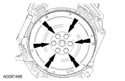 1. Remove the 6 bolts and the flywheel.
