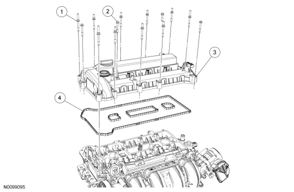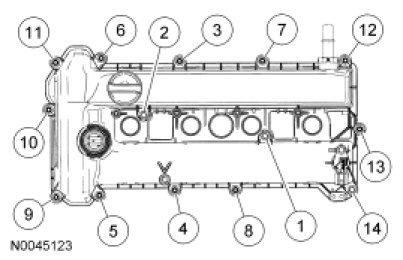 2. NOTE: The valve cover must be secured within 4 minutes of silicone gasket application. If the valve cover is not secured within 4 minutes, the sealant must be removed and the sealing area cleaned with metal surface prep.