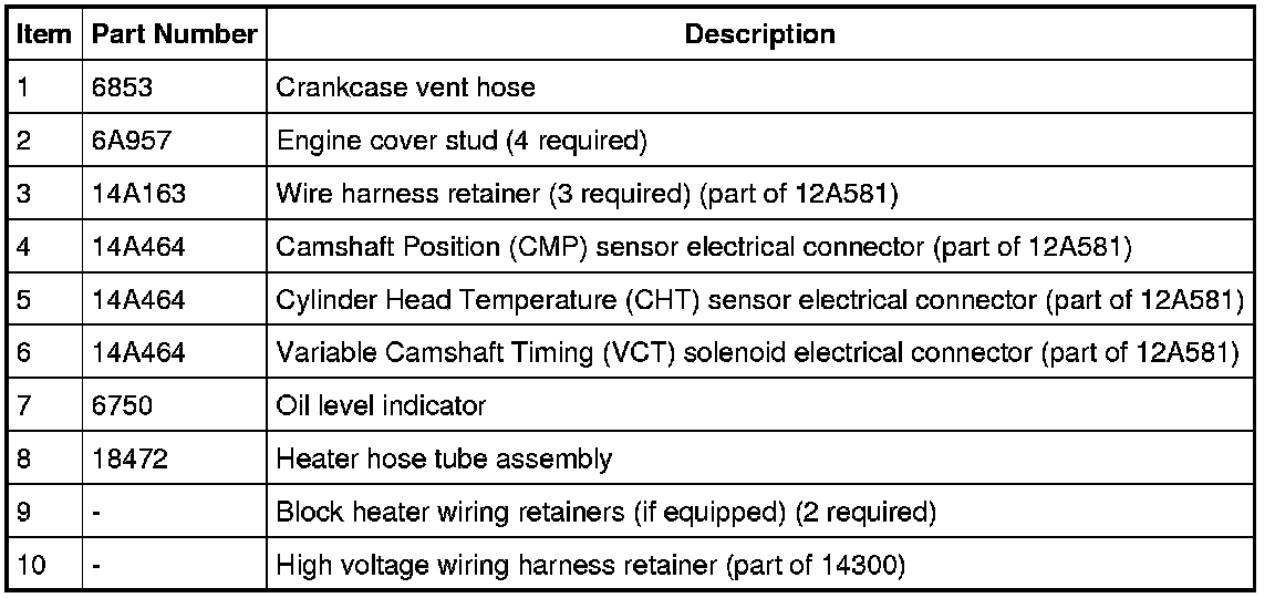 11. Attach the 2 block heater wiring harness retainers (if equipped) and the 2 high voltage wiring harness retainers to the valve cover studs.
