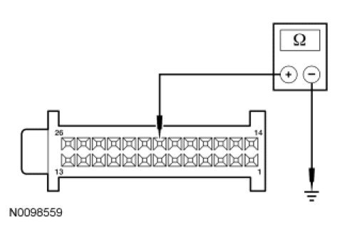 - Measure the resistance between HVAC module - DATC C2356b-20, circuit VH413 (WH/BU), harness side and ground.