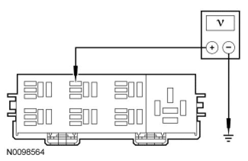 - Measure the voltage between blower motor relay socket pin 1, circuit CBP45 (YE) and ground.