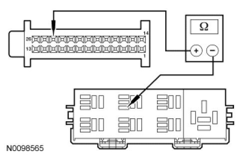 - Measure the resistance between ground and blower motor C288-A, circuit VH219 (GY), harness side.