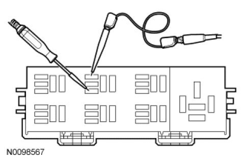 NOTICE: The following step uses a test light to simulate normal circuit loads. Use only the test light recommended in the Special Tools table at the beginning or equivalent. To avoid connector terminal damage, use the Flex Probe Kit for the test light probe connection to the vehicle. Do not use the test light probe directly on any connector.