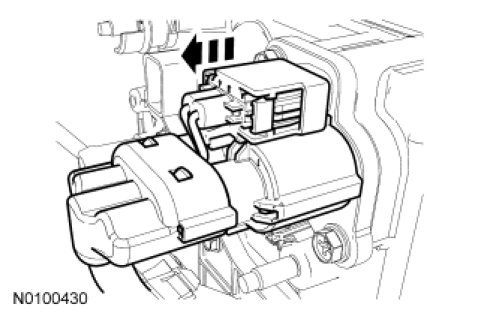 28. Disconnect the high-voltage electrical connector from the transmission and position the cable aside.