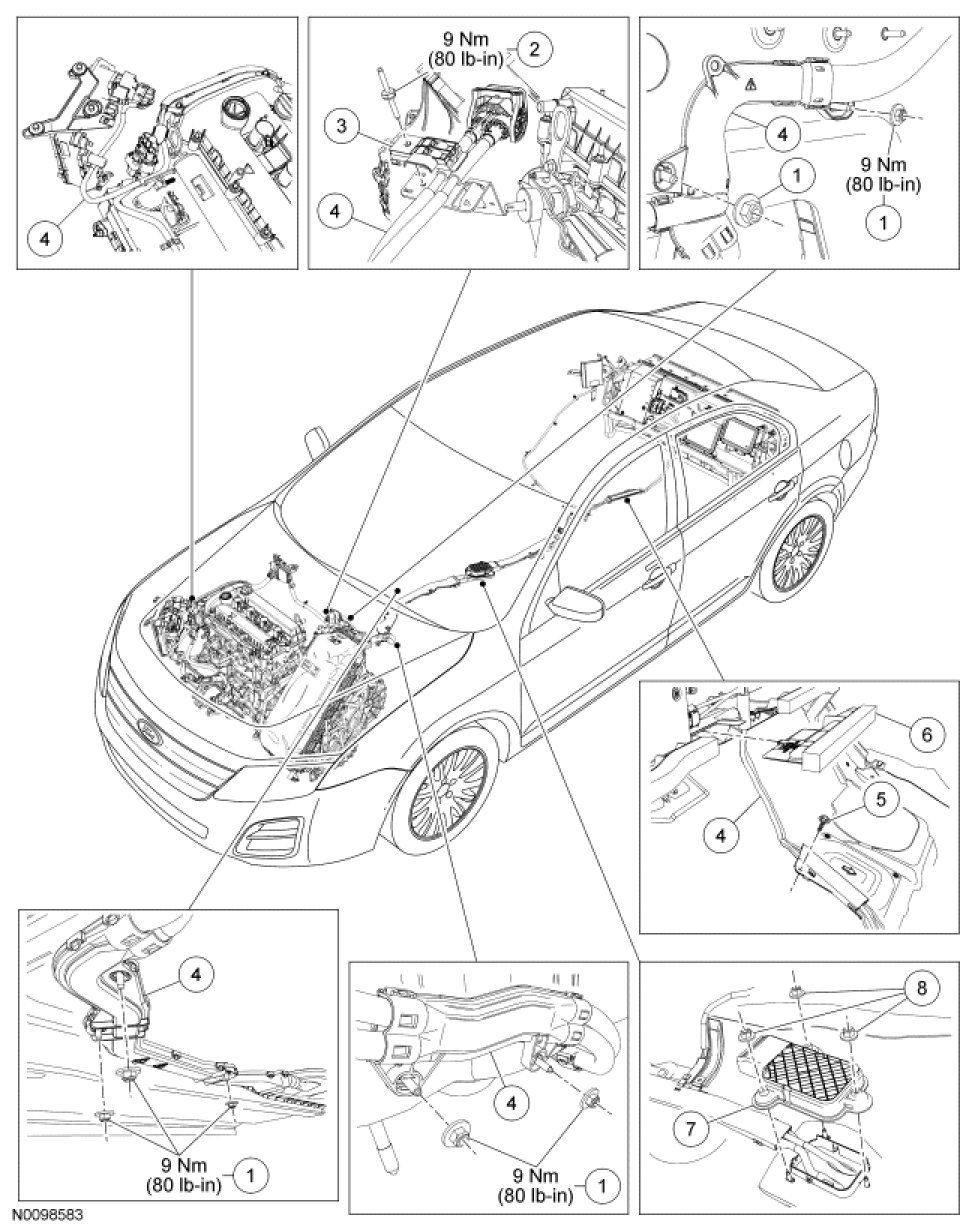 21. With the vehicle in NEUTRAL, position it on a hoist. For additional information, refer to Jacking and Lifting Service and Repair.