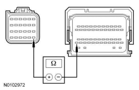 - Measure the resistance between BECM C4237A-46, circuit CR167 (YE/VT), harness side and RCM C310A-19, circuit CR167 (YE/VT), harness side.