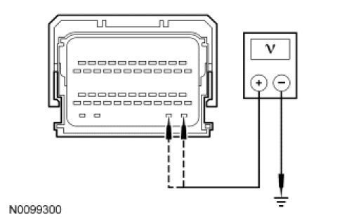 - Measure the voltage between BECM C4237A-47, SBB17 (RD), harness side and ground and BECM C4237A-48, SBB17 (RD), harness side and ground.