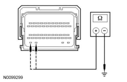 - Measure the resistance between BECM C4237A-49, GD126 (BK/WH), harness side and ground; and BECM C4237A-50, GD126 (BK/WH), harness side and ground.