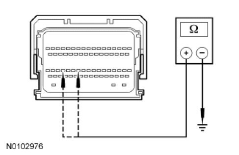 - Measure the resistance between BECM C4237B-44, circuit J1-A44, harness side and ground; and between BECM C4237B-47, circuit J1-A47, harness side and ground.