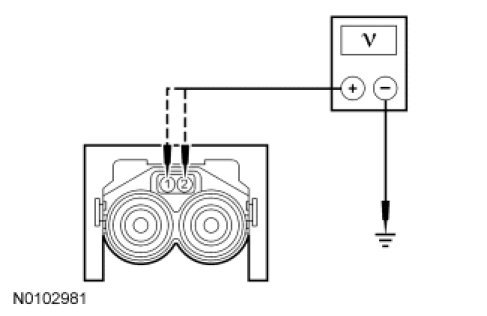 - Measure the voltage between high-voltage BEC C4236B-1, circuit CYB04 (VT/BN), harness side and ground; and between high-voltage BEC C4236B-2, circuit CYB03 (BN/YE), harness side and ground.