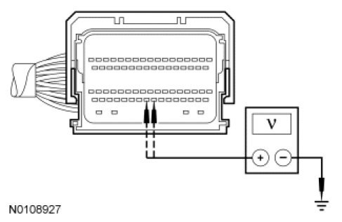 - Measure the voltage between BECM C4237B-58, circuit J1-A58, harness side and ground; and between BECM C4237B-59, circuit J1-A59, harness side and ground.