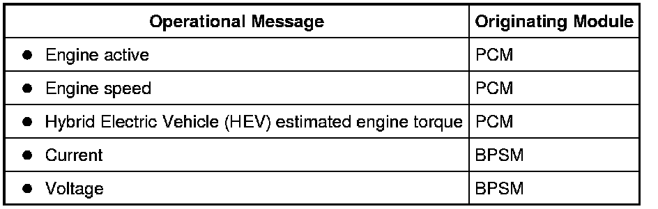 The Instrument Panel Cluster (IPC) receives the split power gauge data from the PCM and the Battery Pack Sensor Module (BPSM) over the High Speed Controller Area Network (HS-CAN) communication bus.