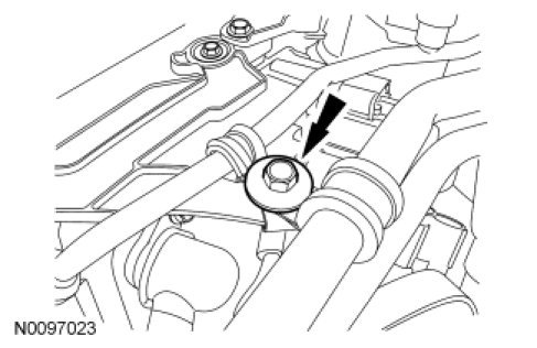 5. Rotate the accessory drive belt tensioner counterclockwise and remove the accessory drive belt.