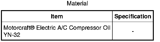NOTICE: Motorcraft(R) Electric A/C Compressor Oil only must be used as a refrigerant system lubricant for hybrid vehicles. Addition of any oil other than Motorcraft(R) Electric A/C Compressor Oil to the hybrid vehicle refrigerant system will damage the electric Air Conditioning (A/C) compressor and contaminate the refrigerant system. Refer to the Refrigerant Oil Adding procedure in Climate Control System - General Information and Diagnostics Refrigerant Oil Adding.