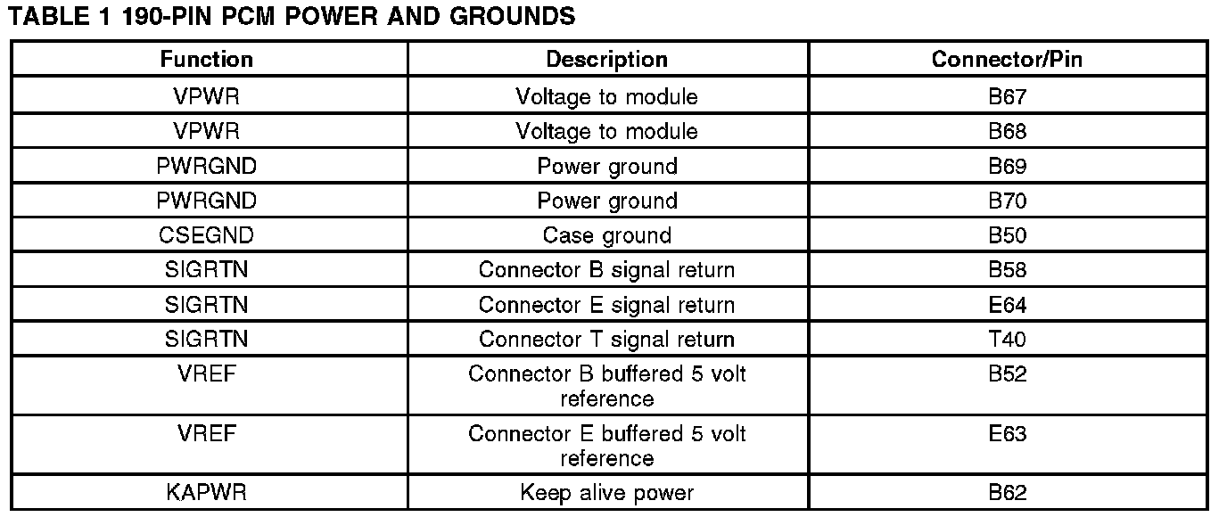 Powertrain Control Module (PCM) Power and Ground Signals