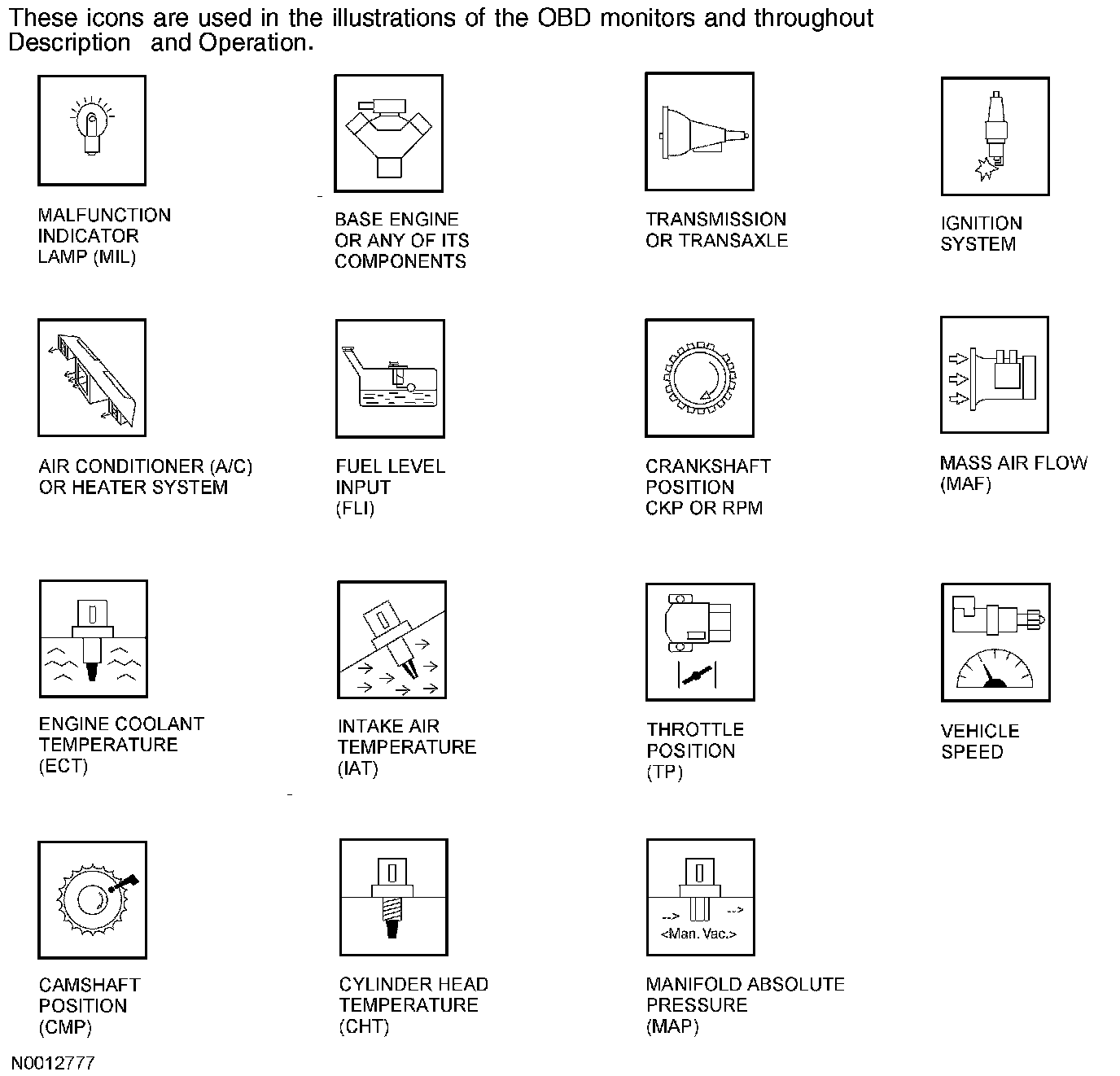 The following system provides a general description of each OBD monitor. In these descriptions, the monitor strategy, hardware, testing requirements and methods are presented to provide an overall understanding of monitor operation. An illustration of each monitor is also provided. These illustrations provide only a high level overview.