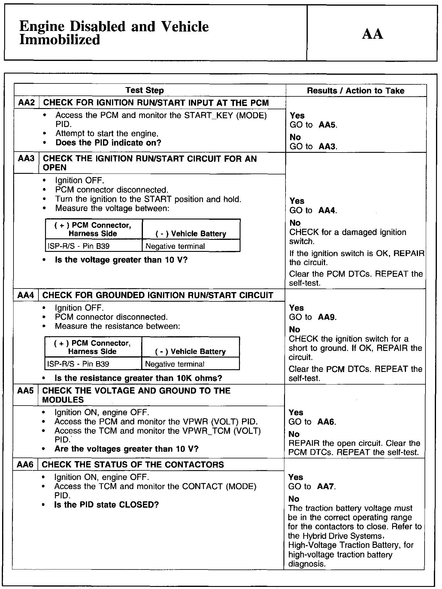 PINPOINT TEST AA: ENGINE DISABLED AND VEHICLE IMMOBILIZED