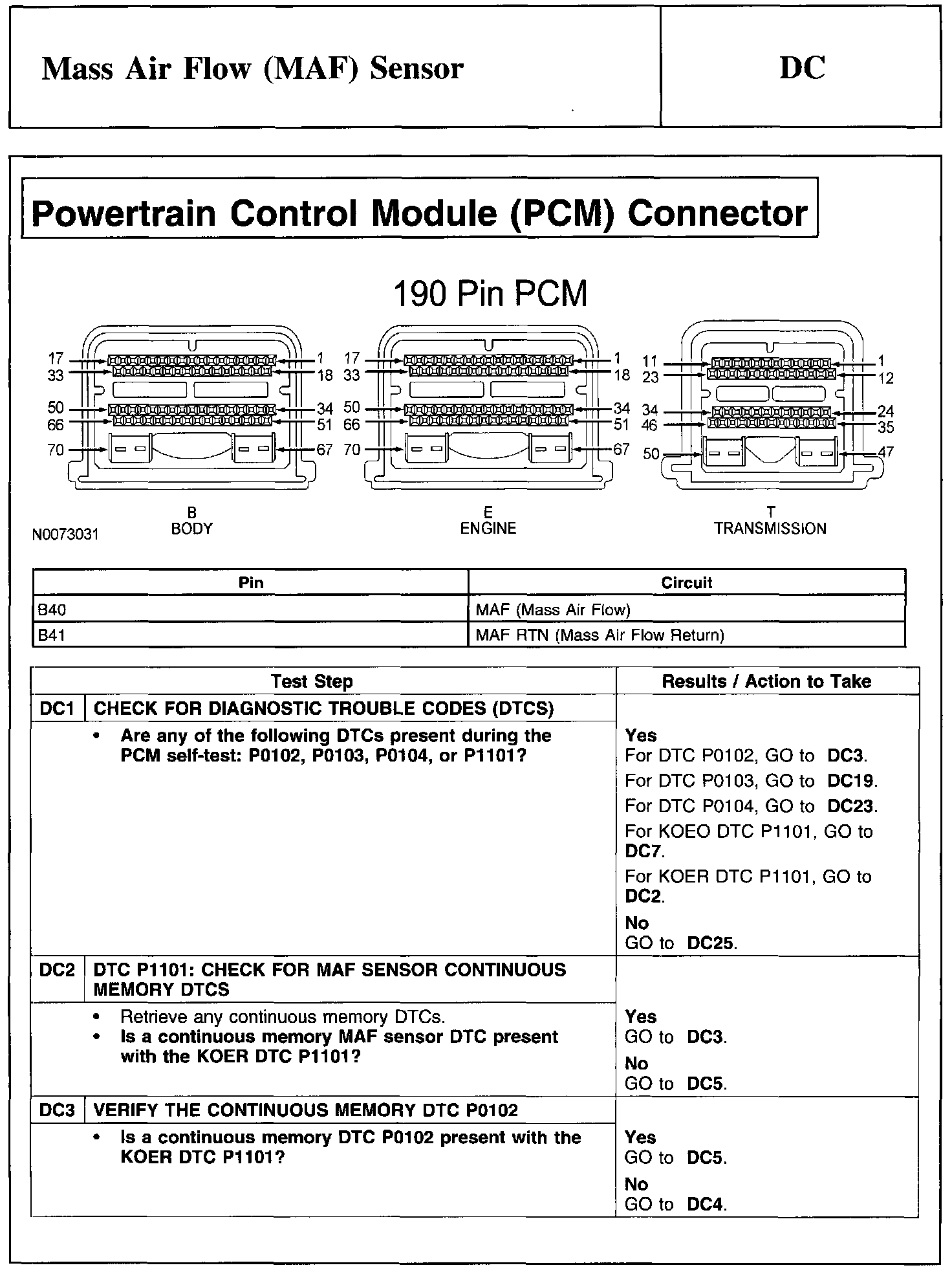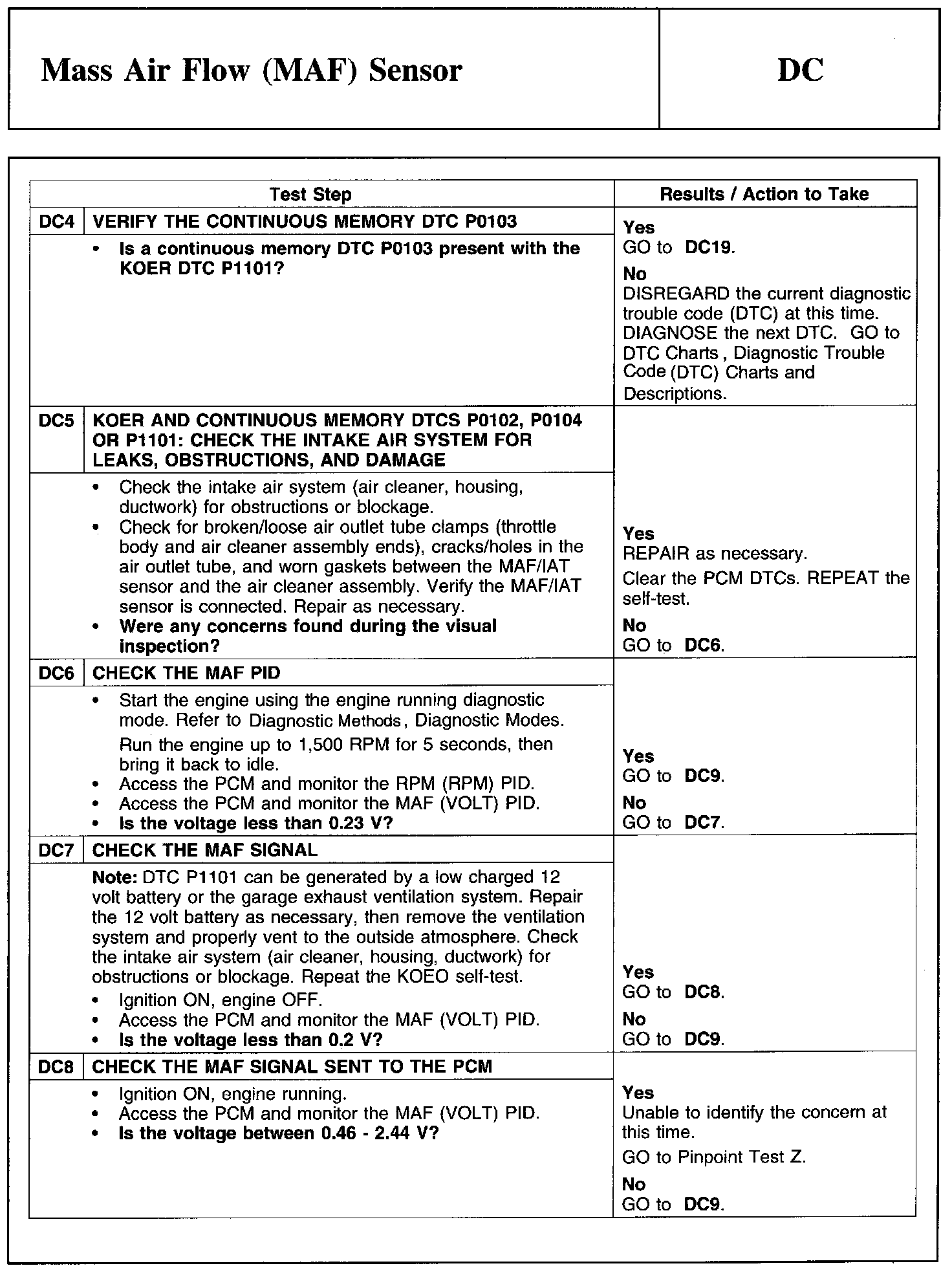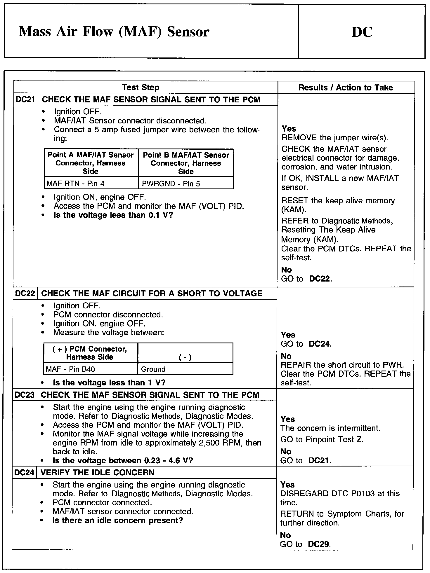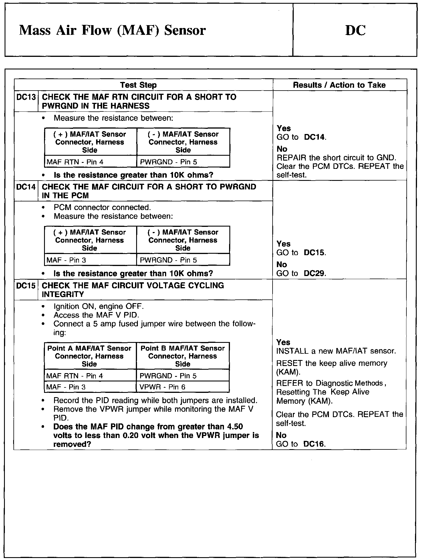 PINPOINT TEST DC: MASS AIR FLOW (MAF) SENSOR