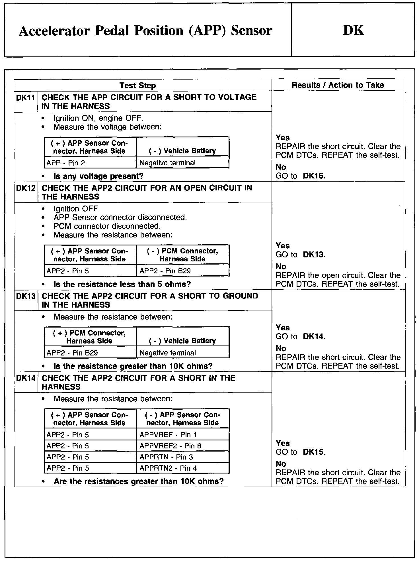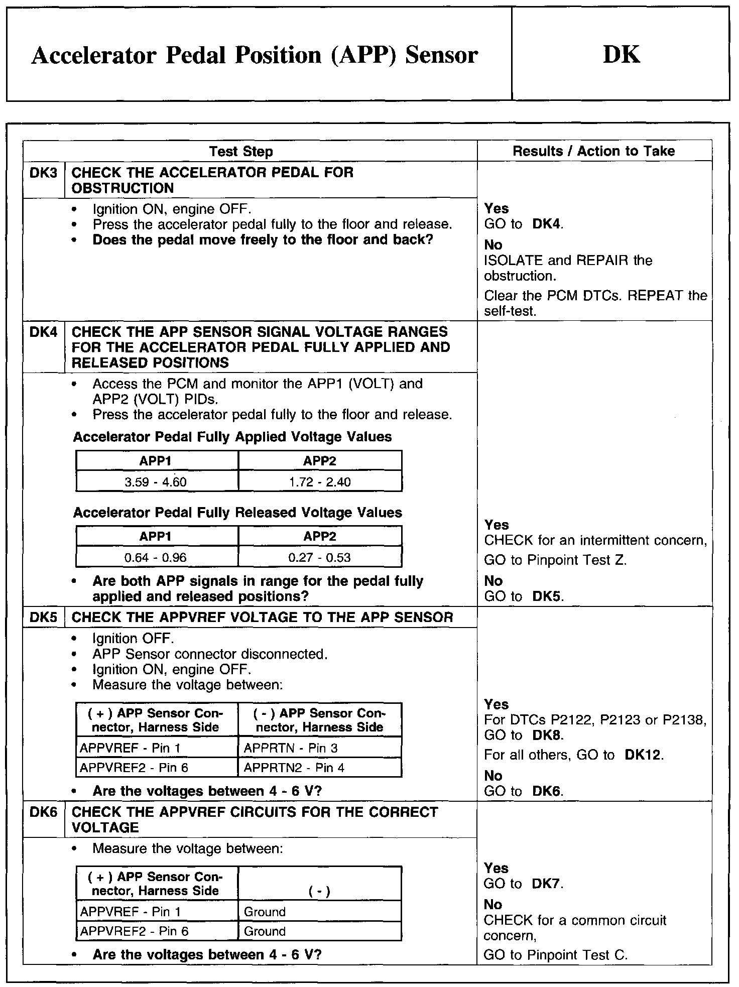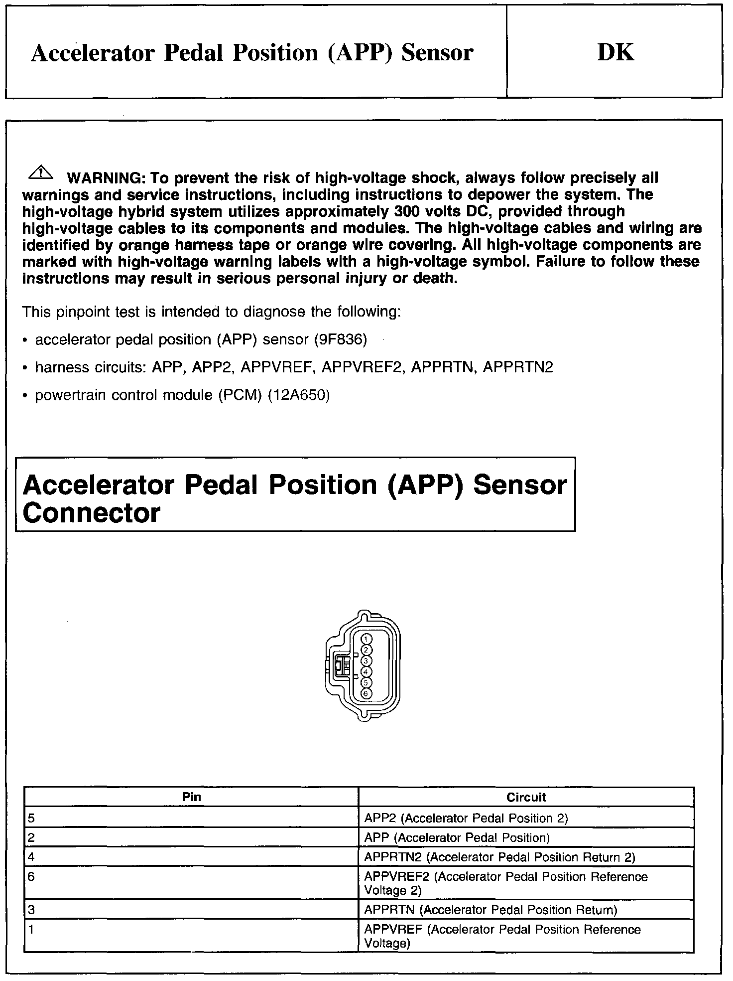 PINPOINT TEST DK: ACCELERATOR PEDAL POSITION (APP) SENSOR