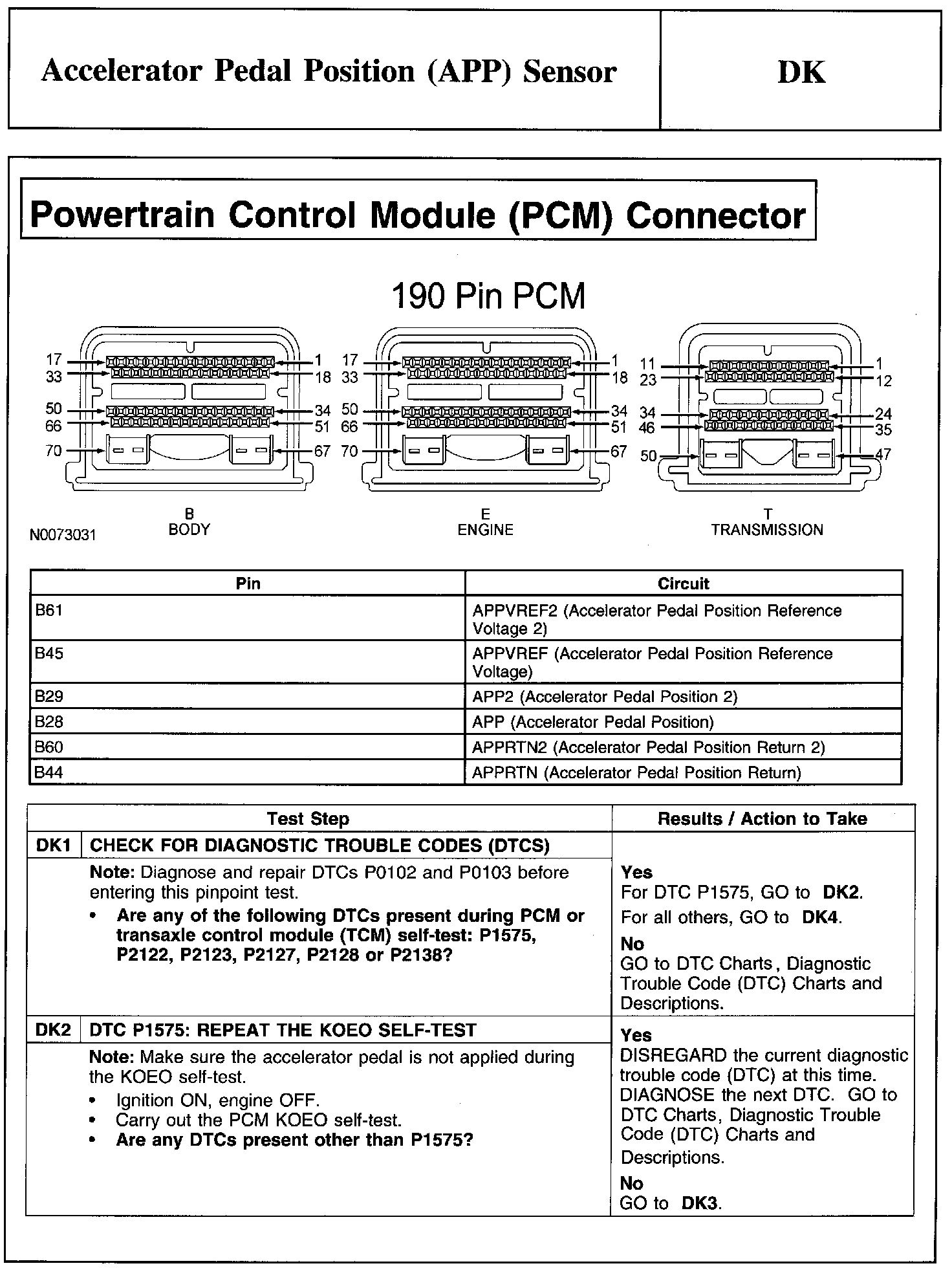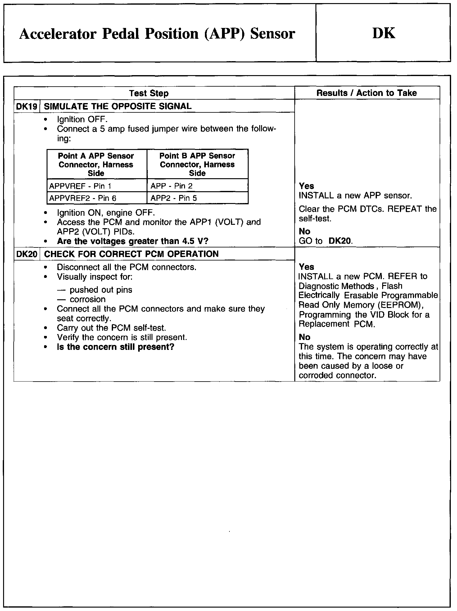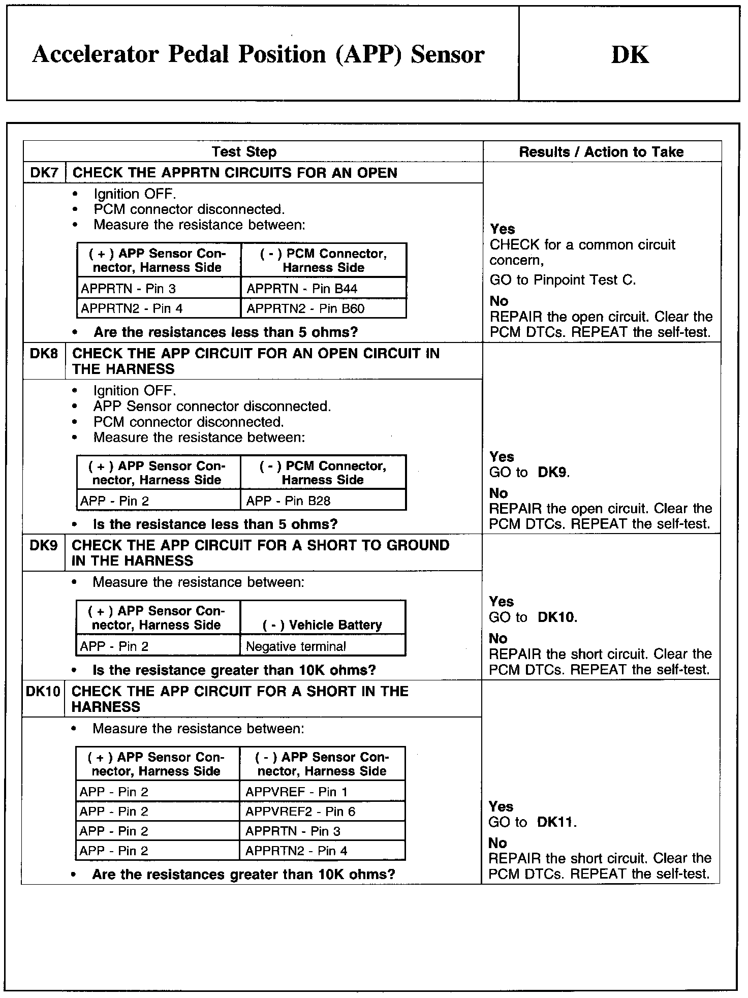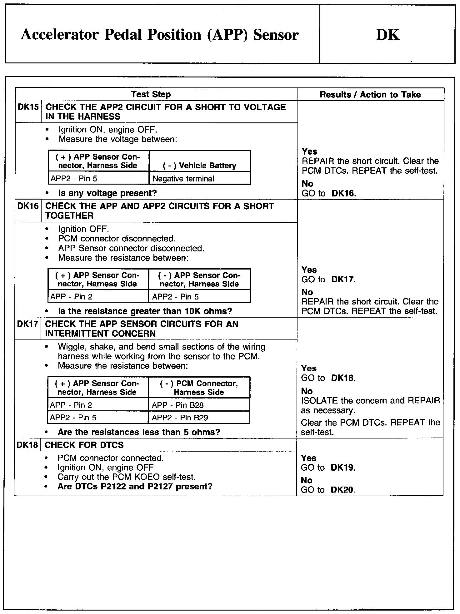 PINPOINT TEST DK: ACCELERATOR PEDAL POSITION (APP) SENSOR