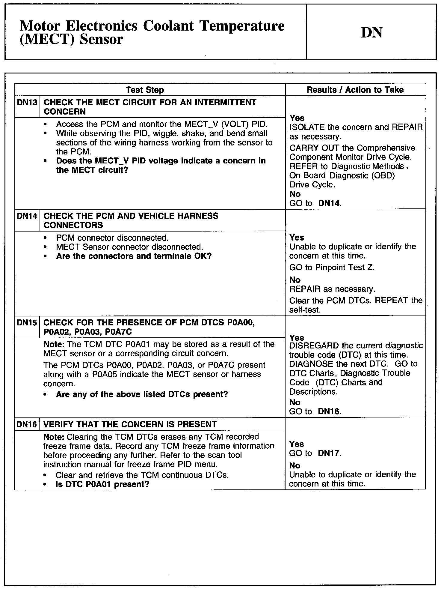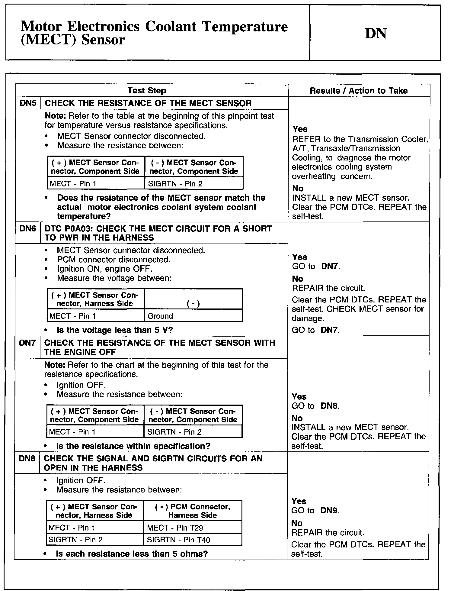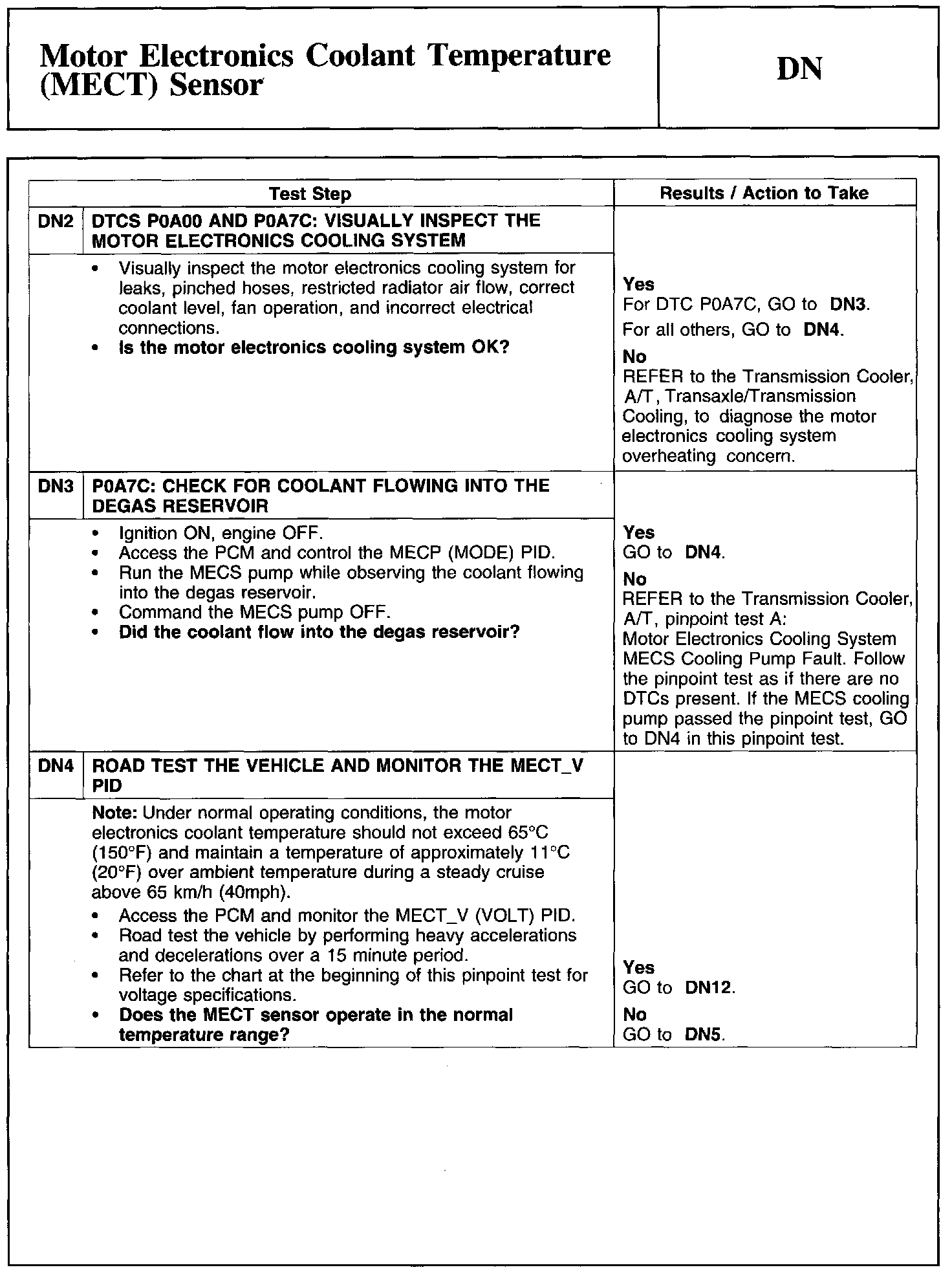PINPOINT TEST DN: MOTOR ELECTRONICS COOLANT TEMPERATURE (MECT) SENSORWarning And Note: