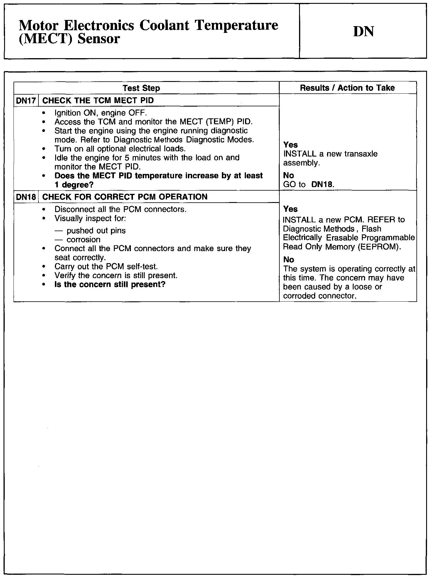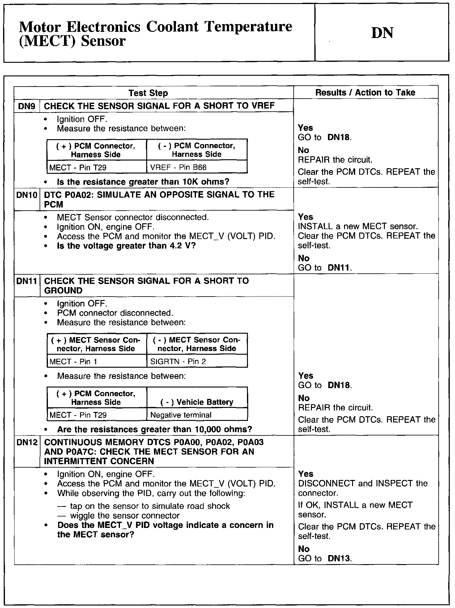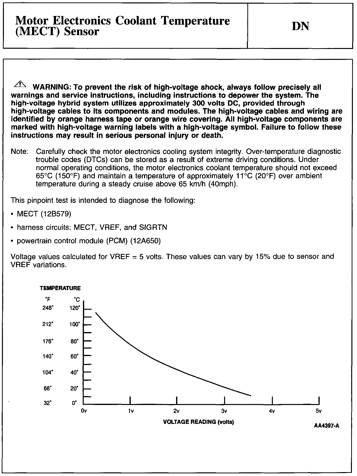 PINPOINT TEST DN: MOTOR ELECTRONICS COOLANT TEMPERATURE (MECT) SENSORWarning And Note: