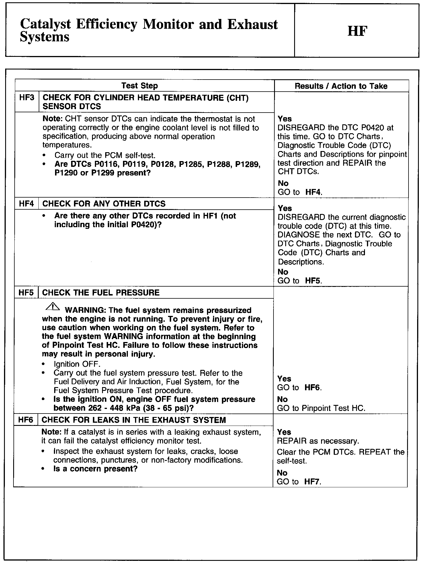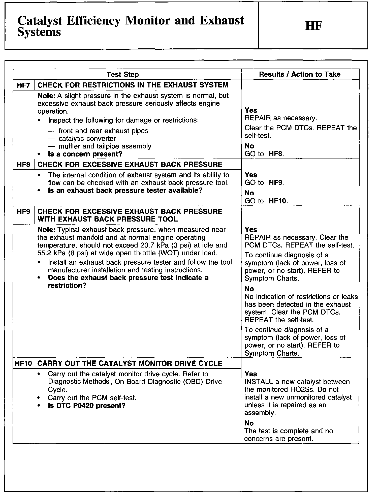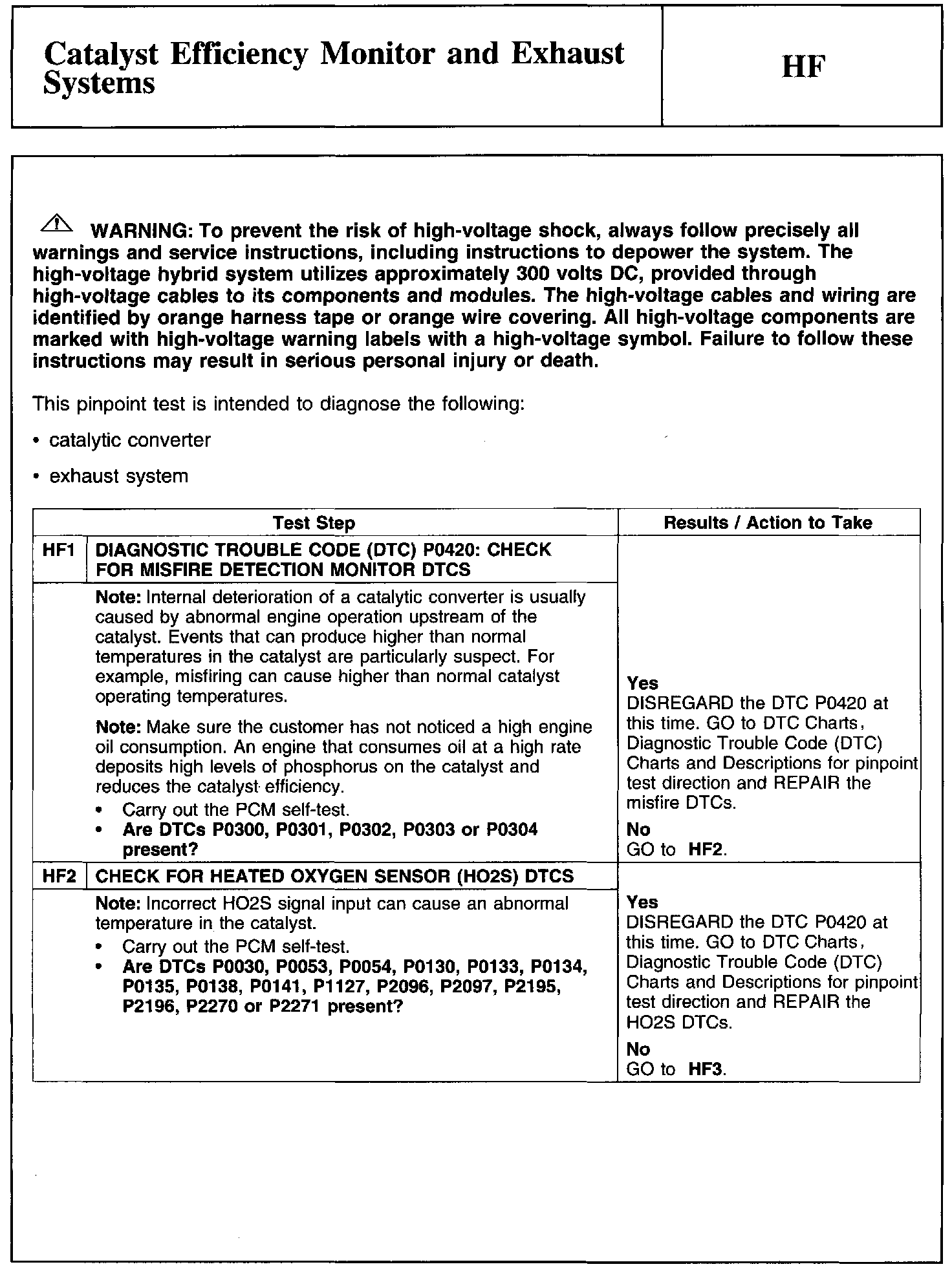Test HF: Catalyst Efficiency Monitor and Exhaust Systems