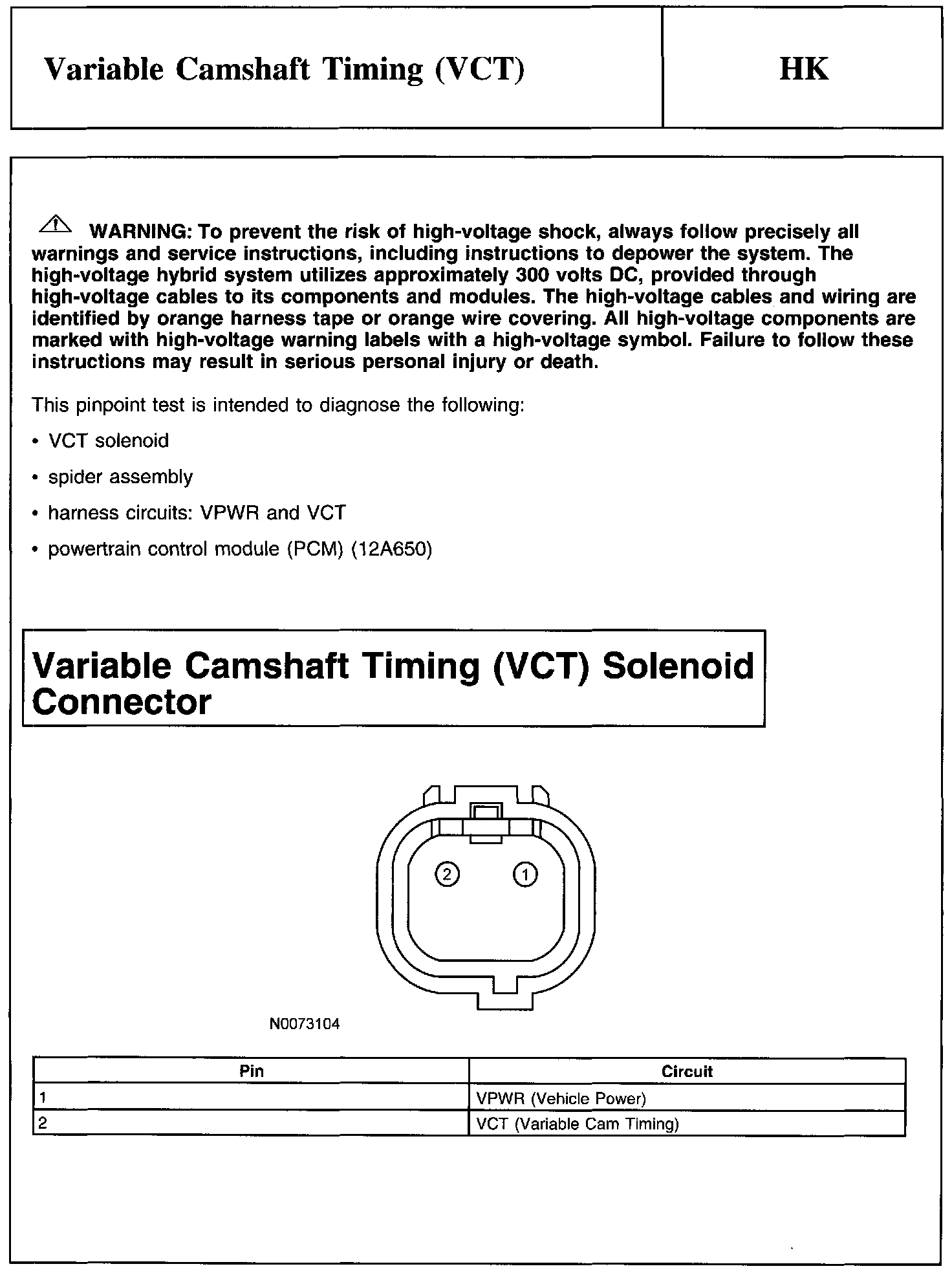 PINPOINT TEST HK: VARIABLE CAMSHAFT TIMING (VCT)