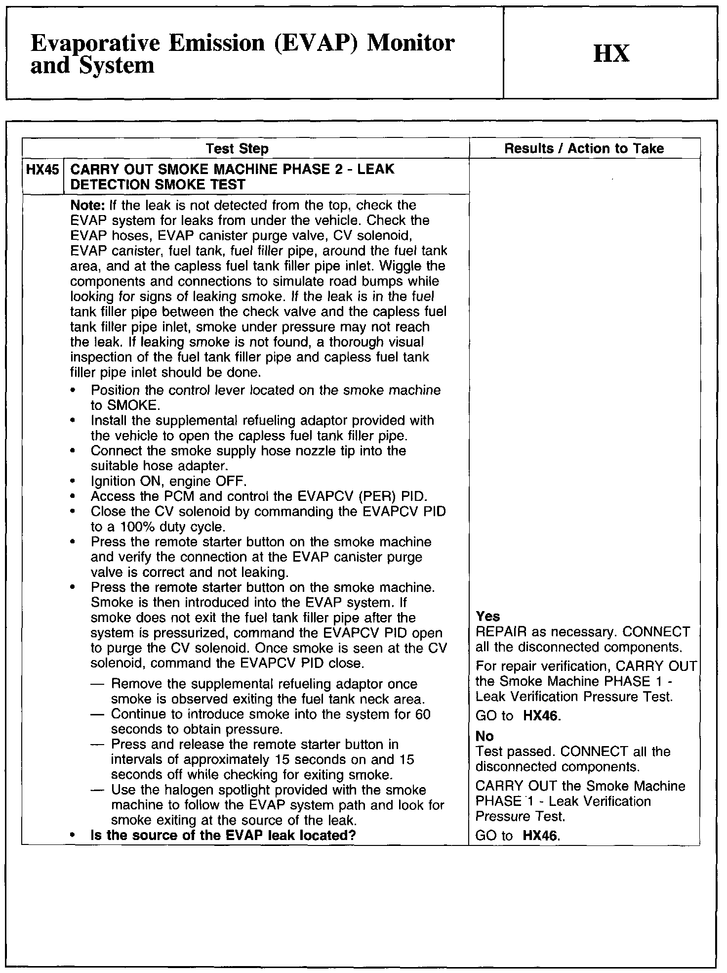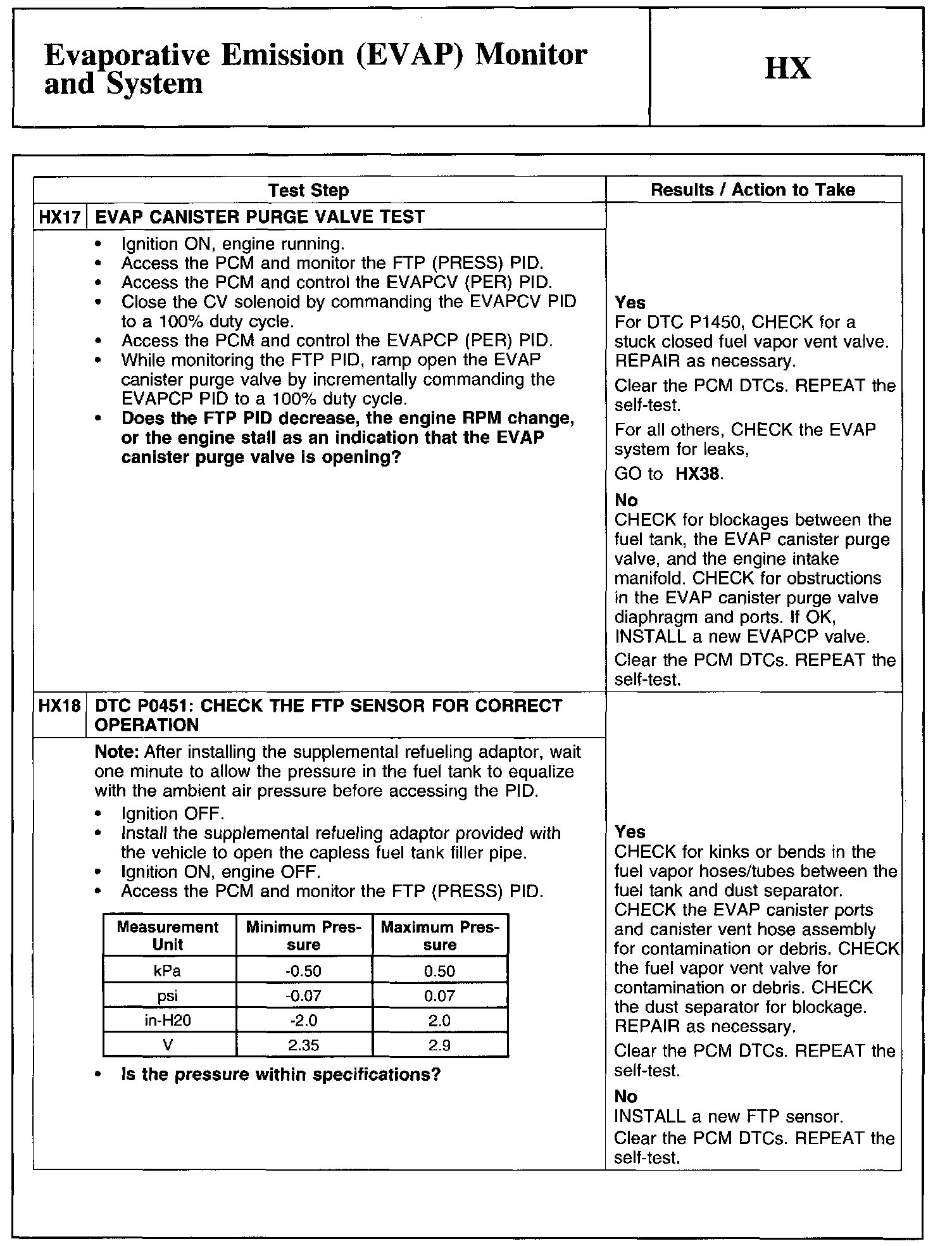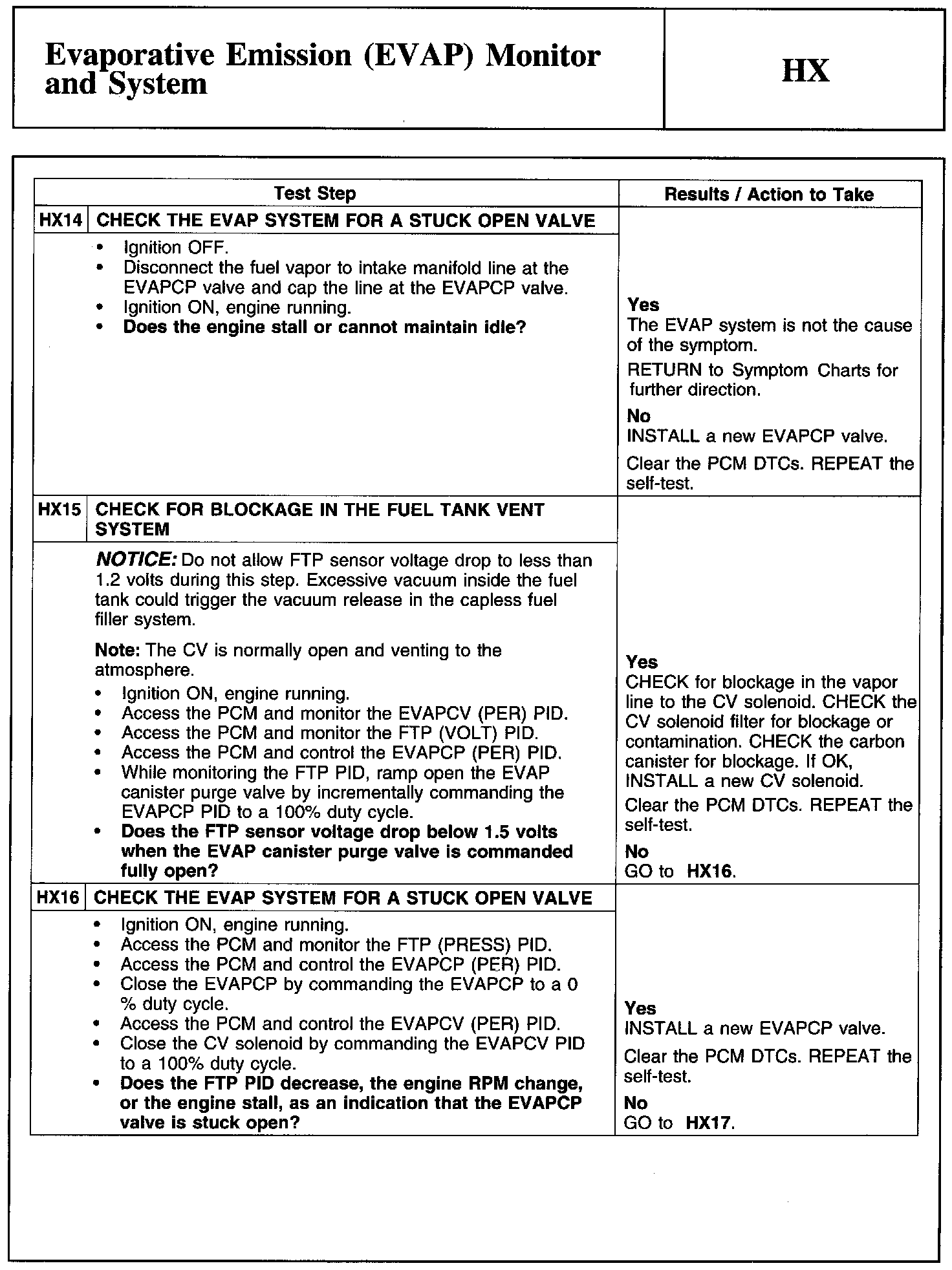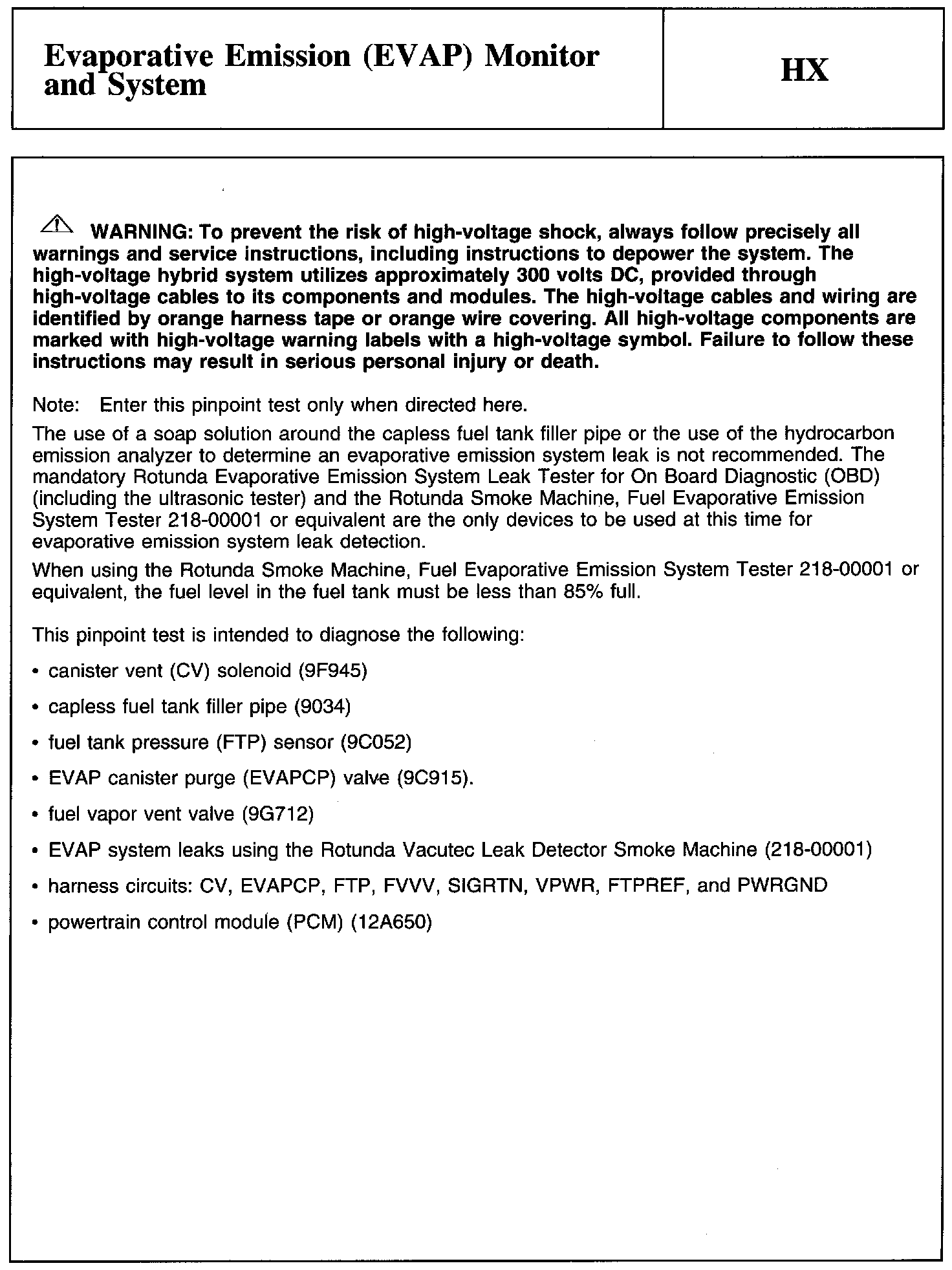 PINPOINT TEST HX: EVAPORATIVE EMISSION (EVAP) SYSTEM AND MONITORWarning And Note:
