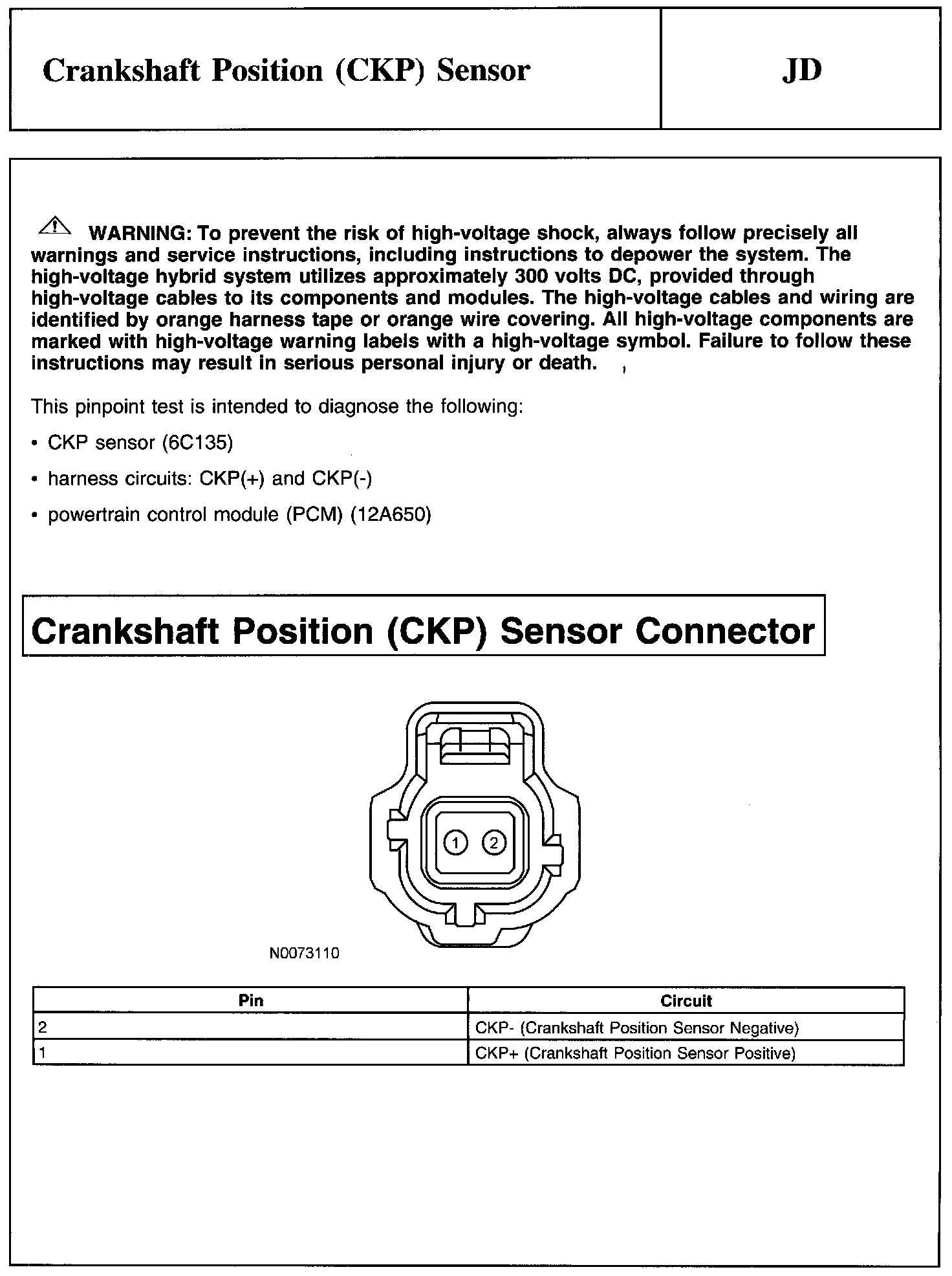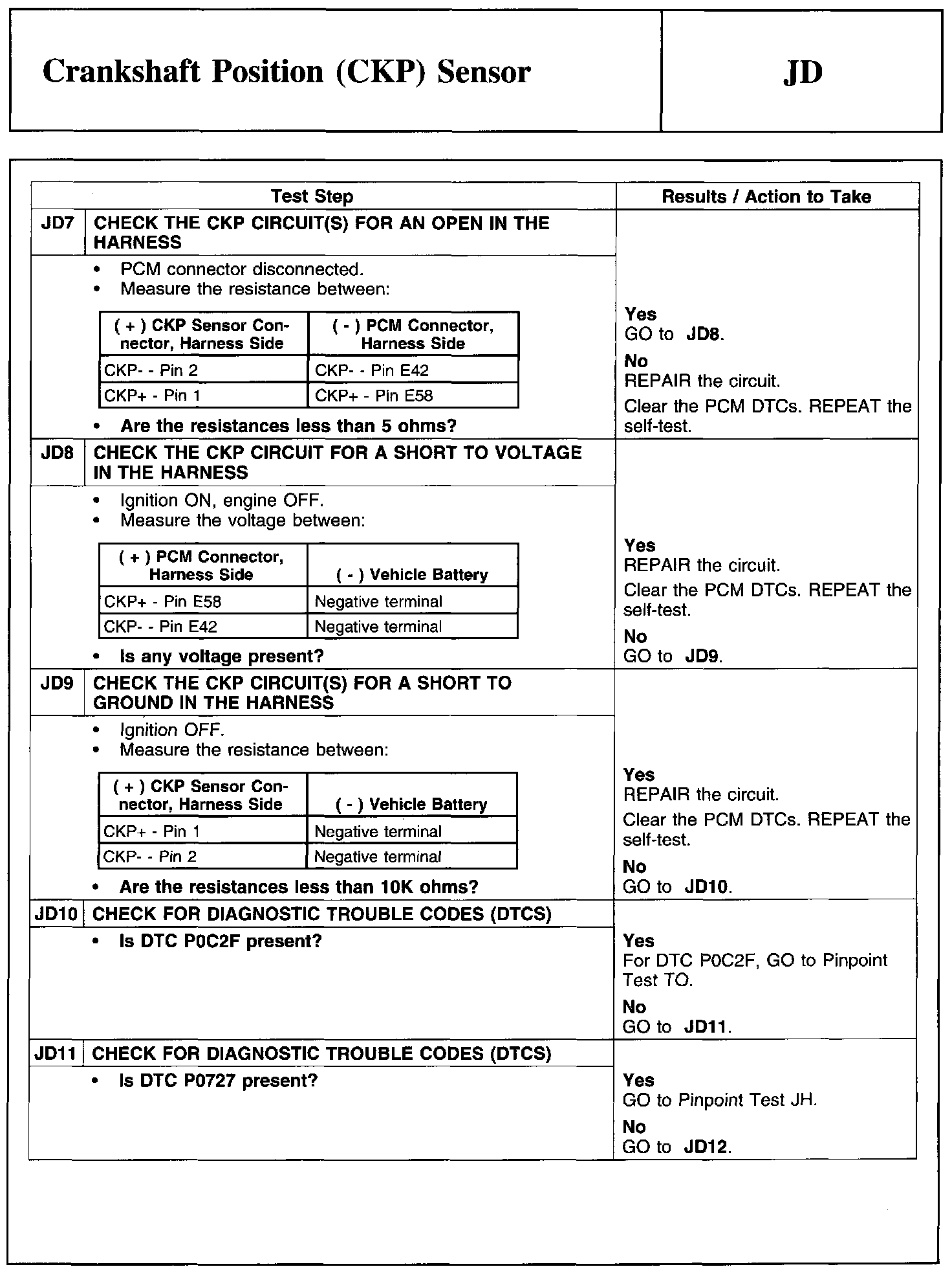 PINPOINT TEST JD: CRANKSHAFT POSITION (CKP) SENSOR