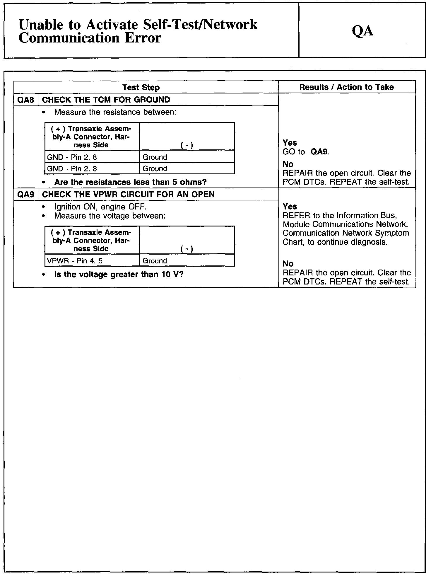 Test QA: Unable To Activate Self-Test/Network Communication Error