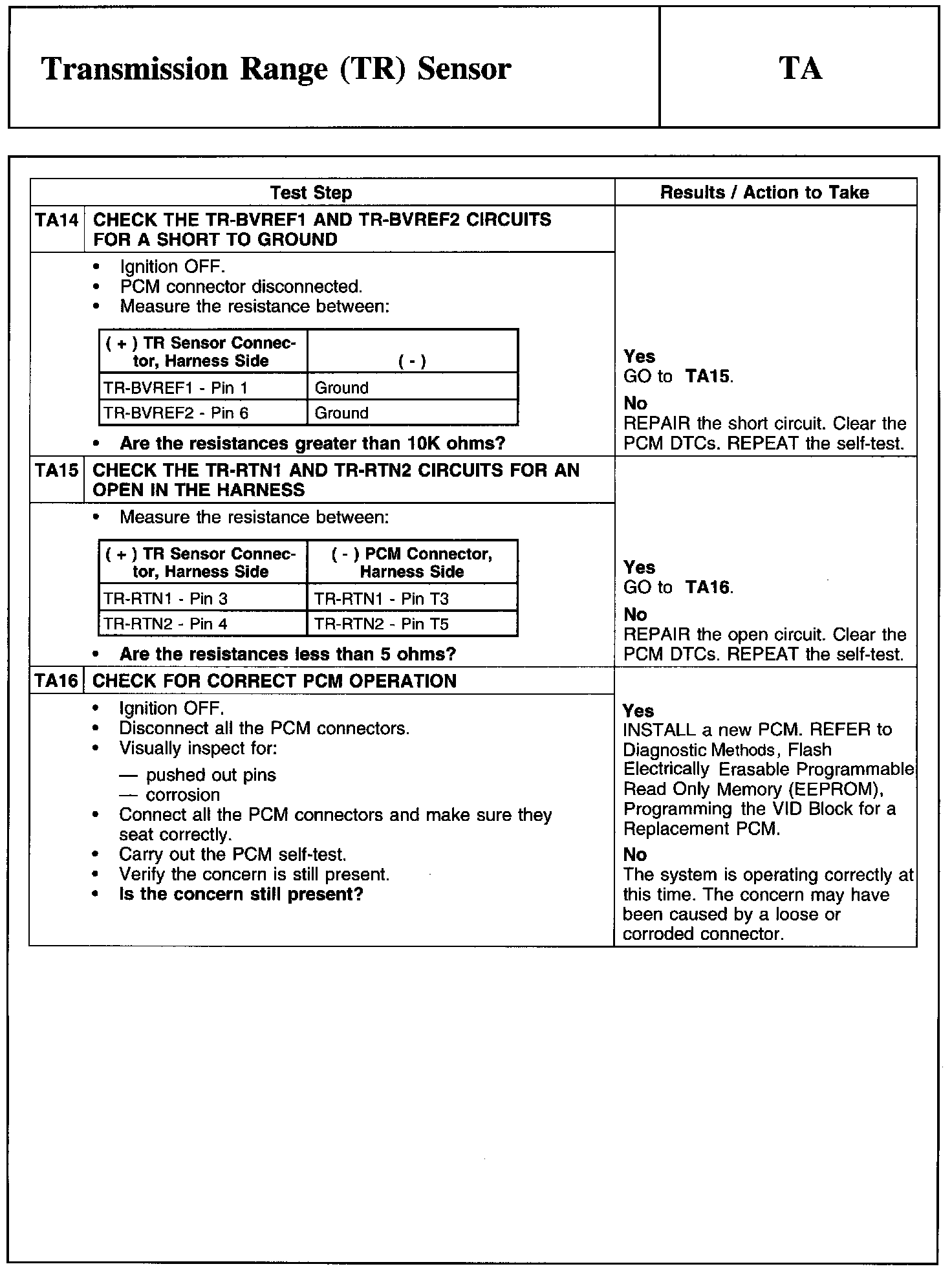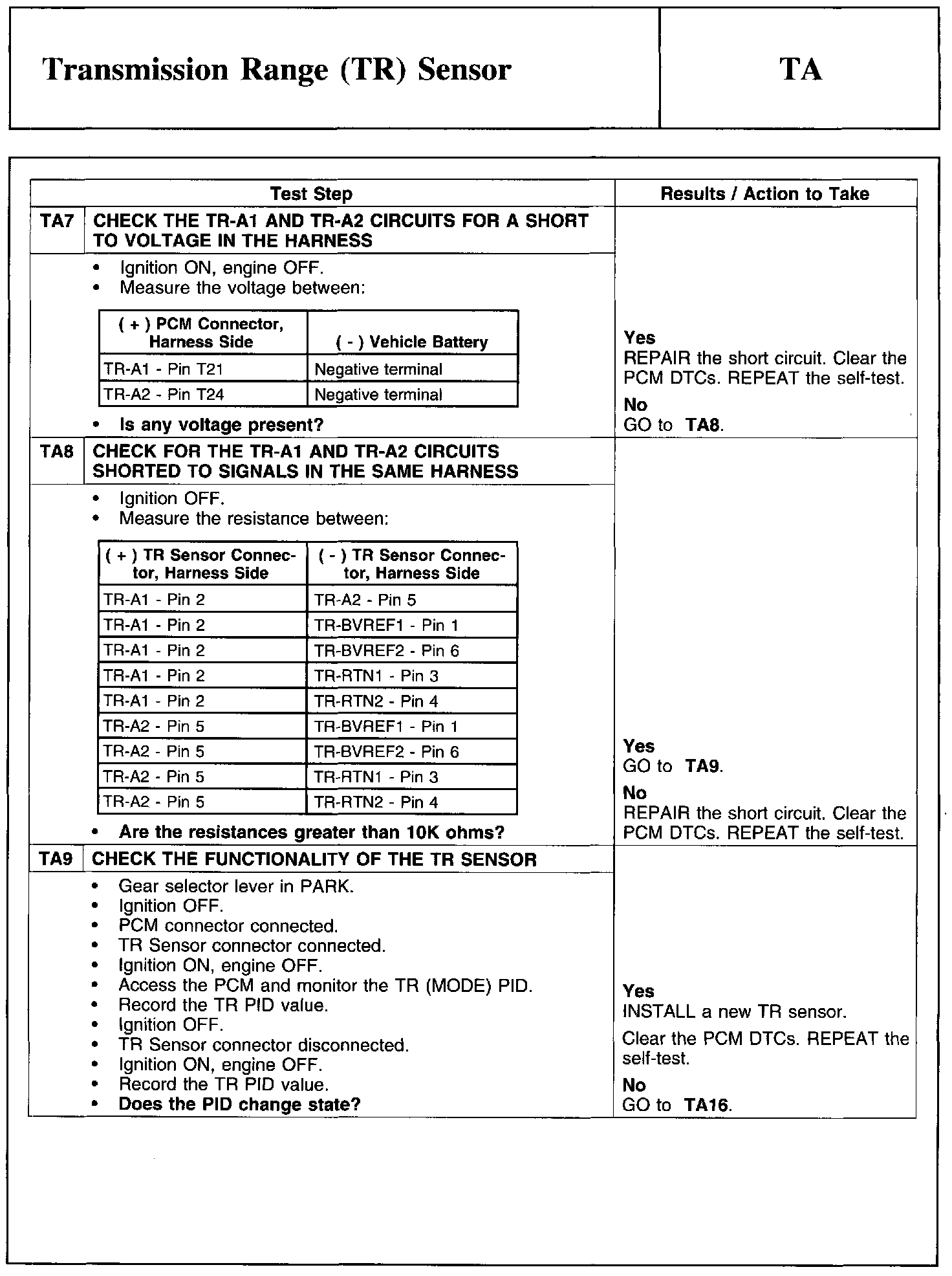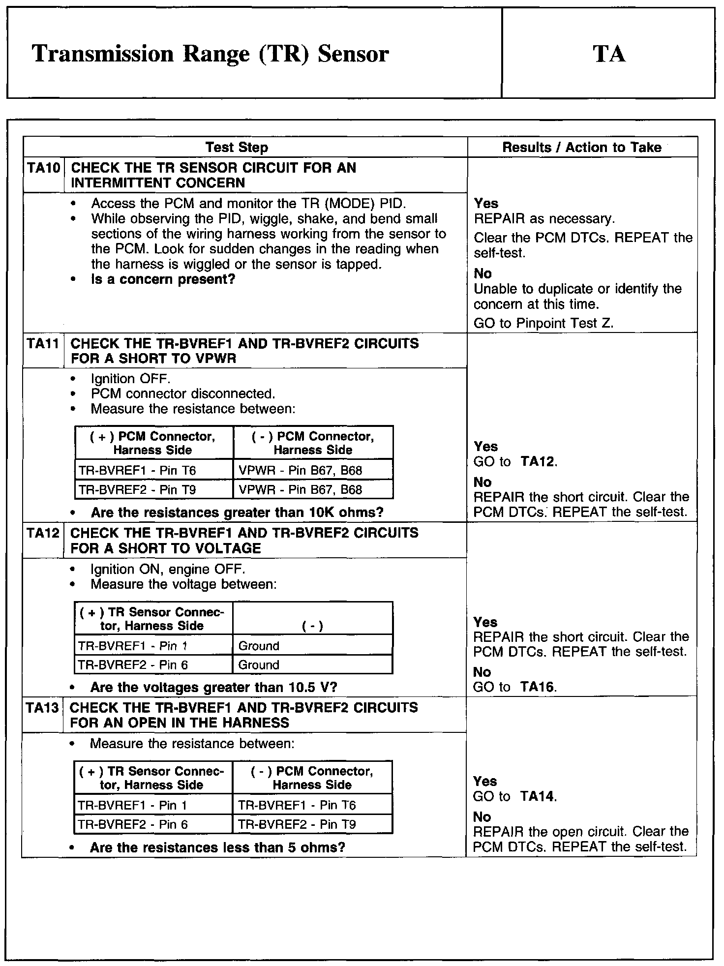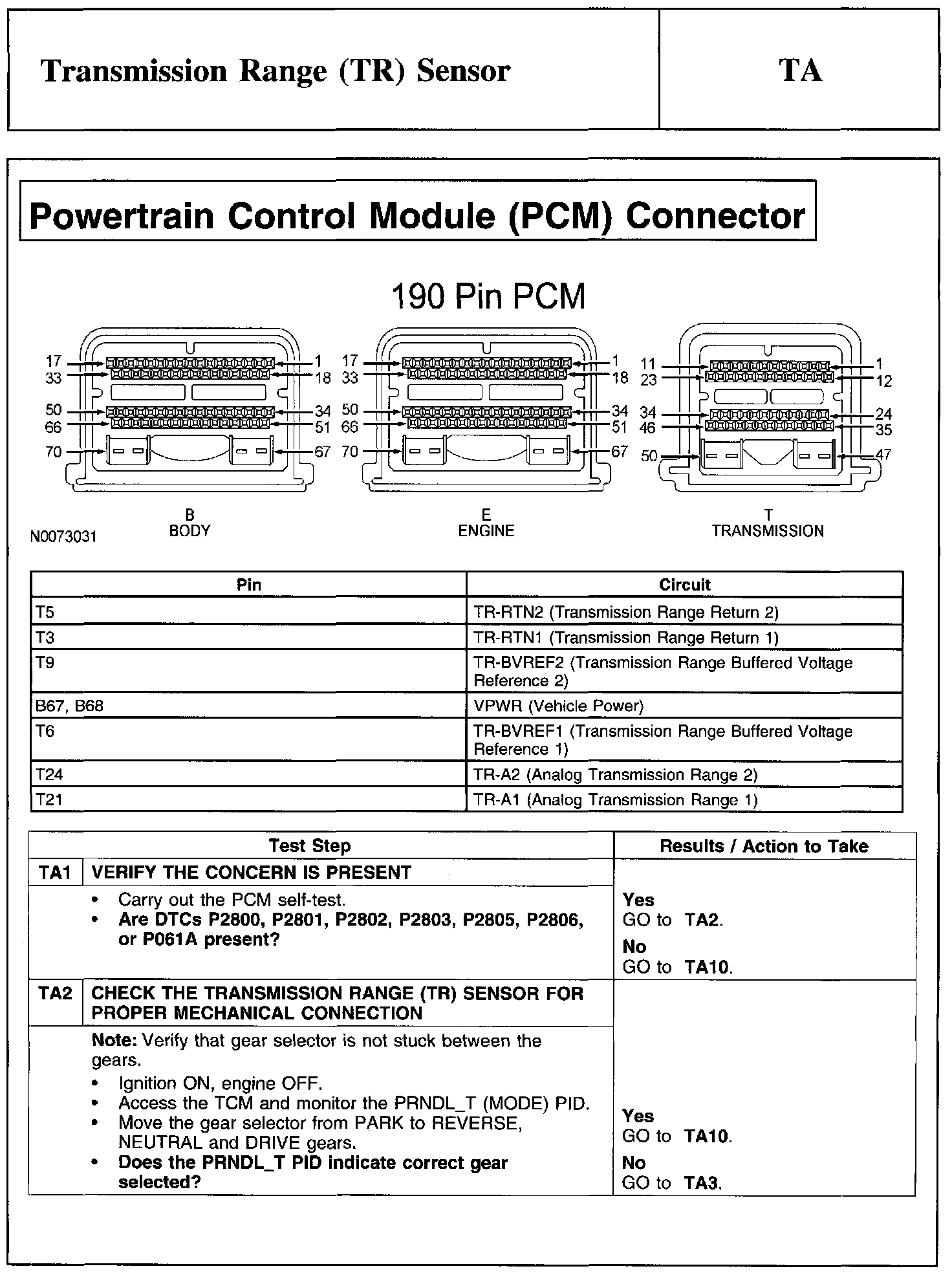 PINPOINT TEST TA: TRANSMISSION RANGE (TR) SENSOR