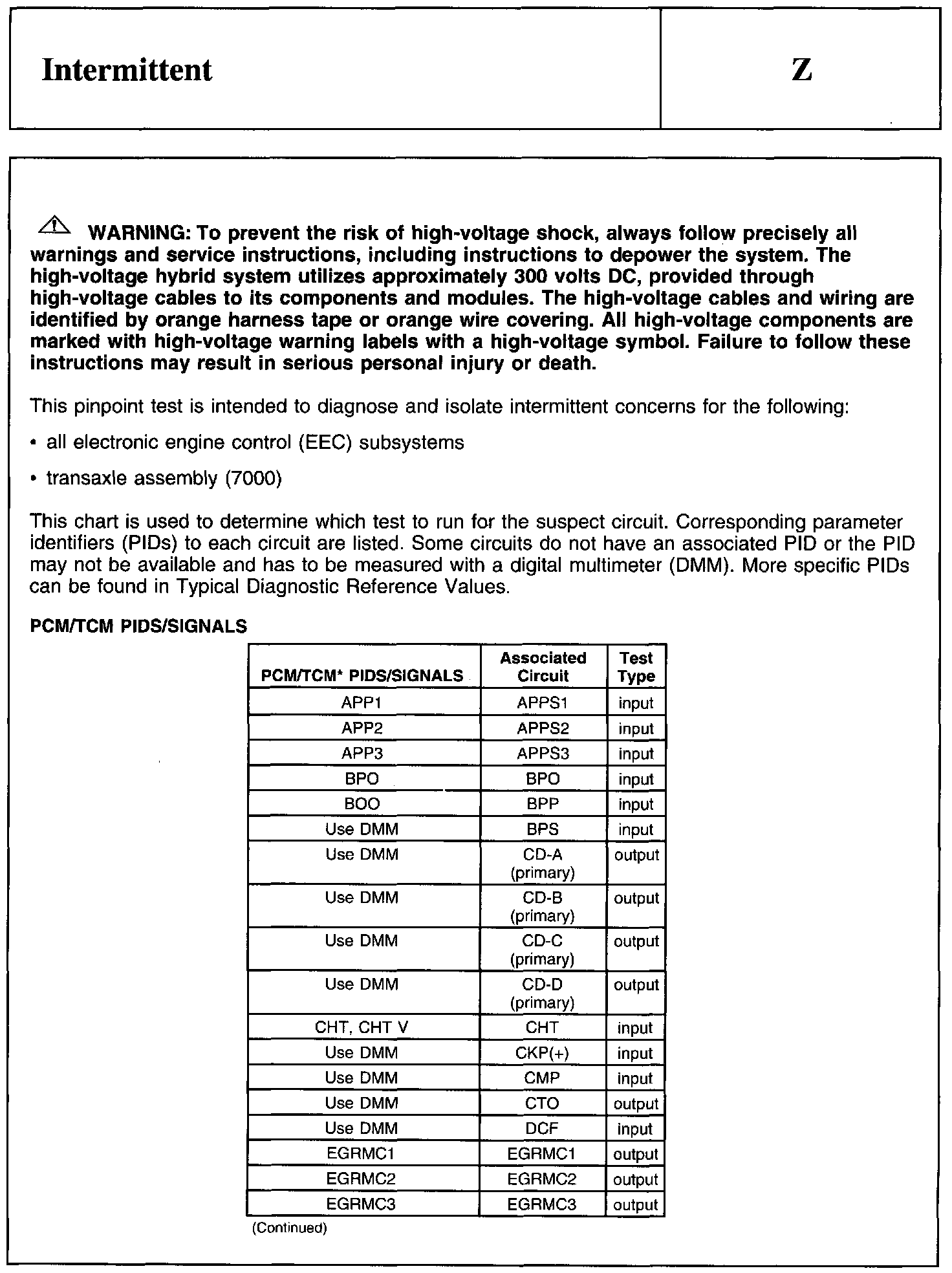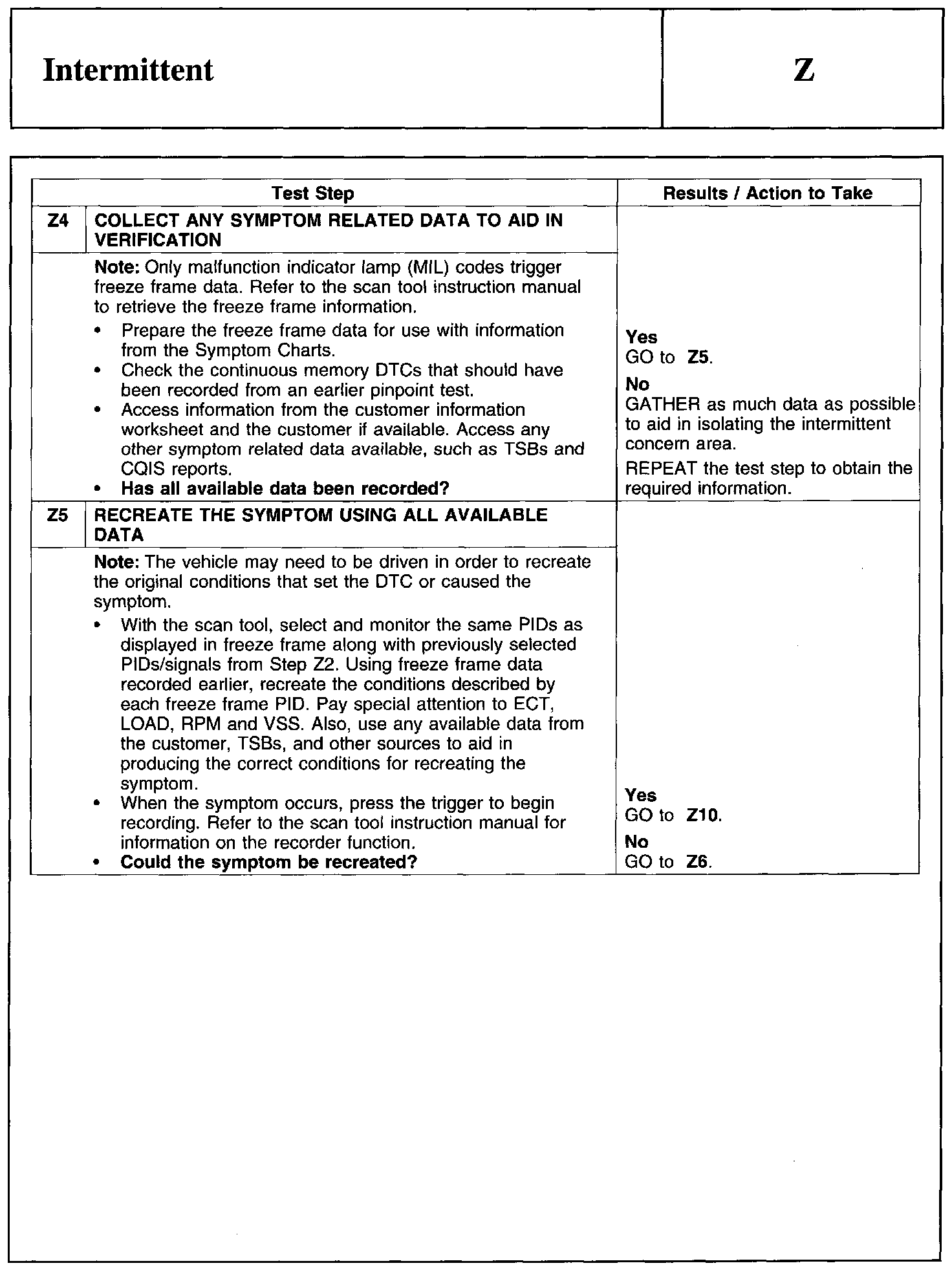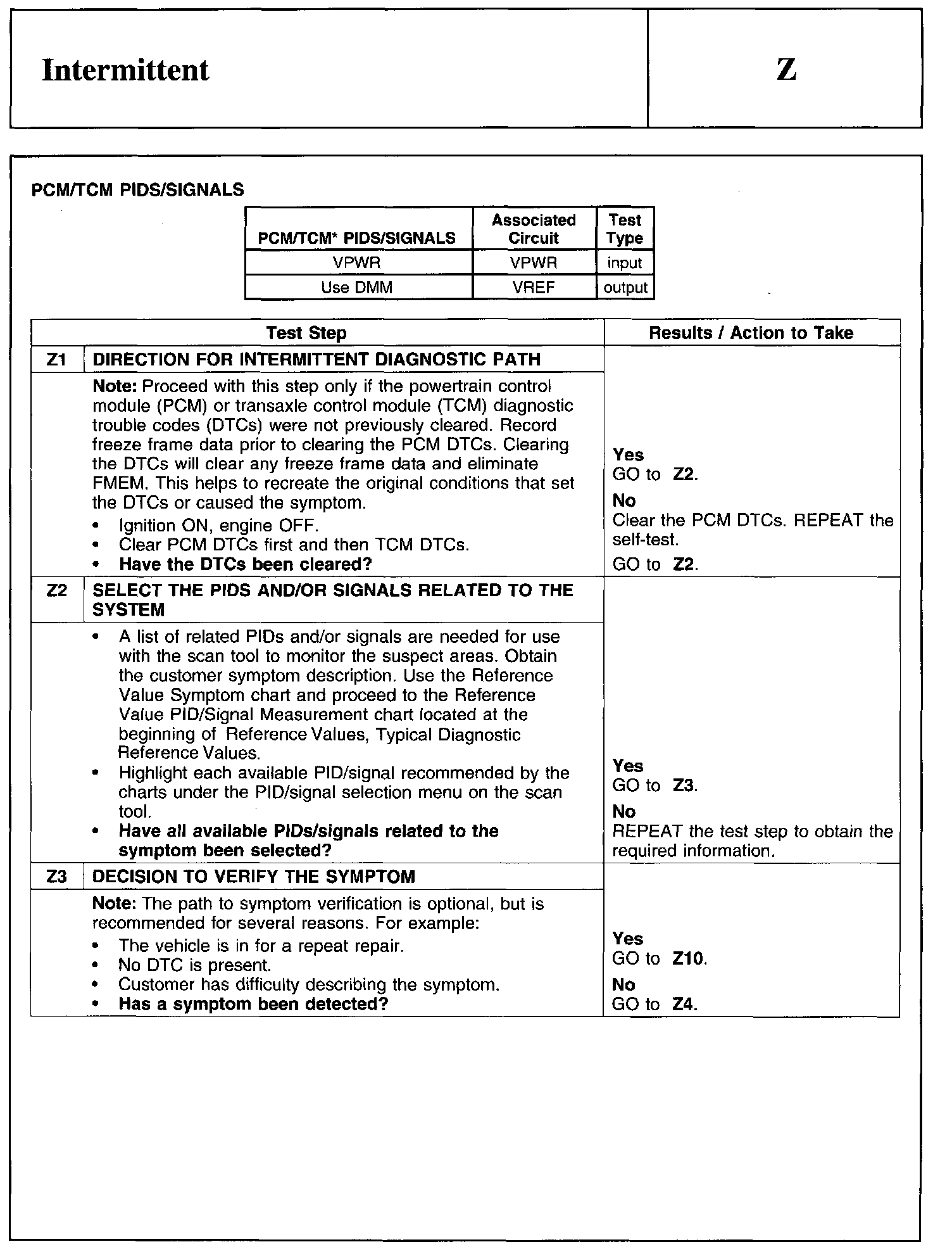 PINPOINT TEST Z: INTERMITTENT