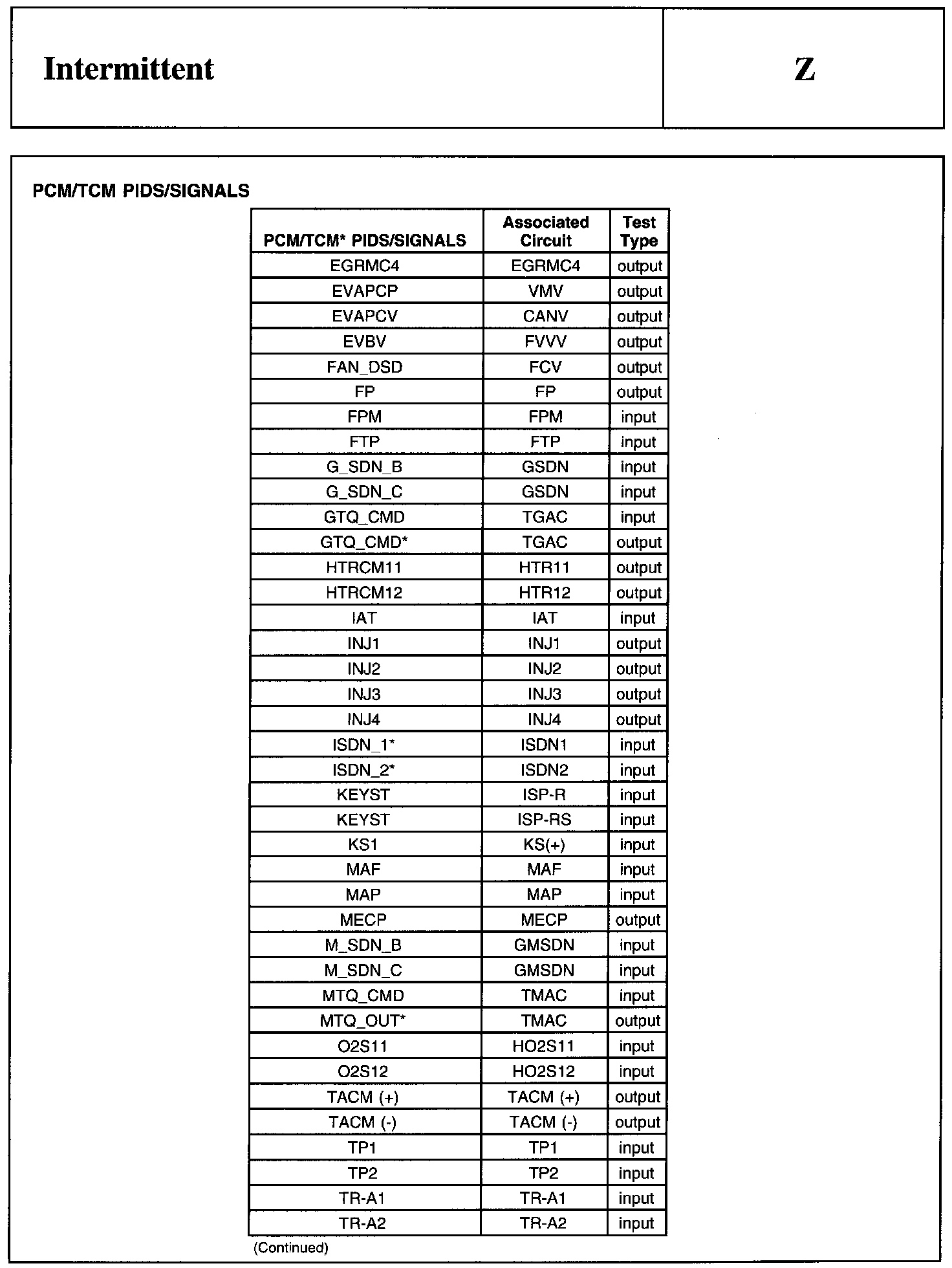 PCM/TCM PIDs/Singals (Continued):