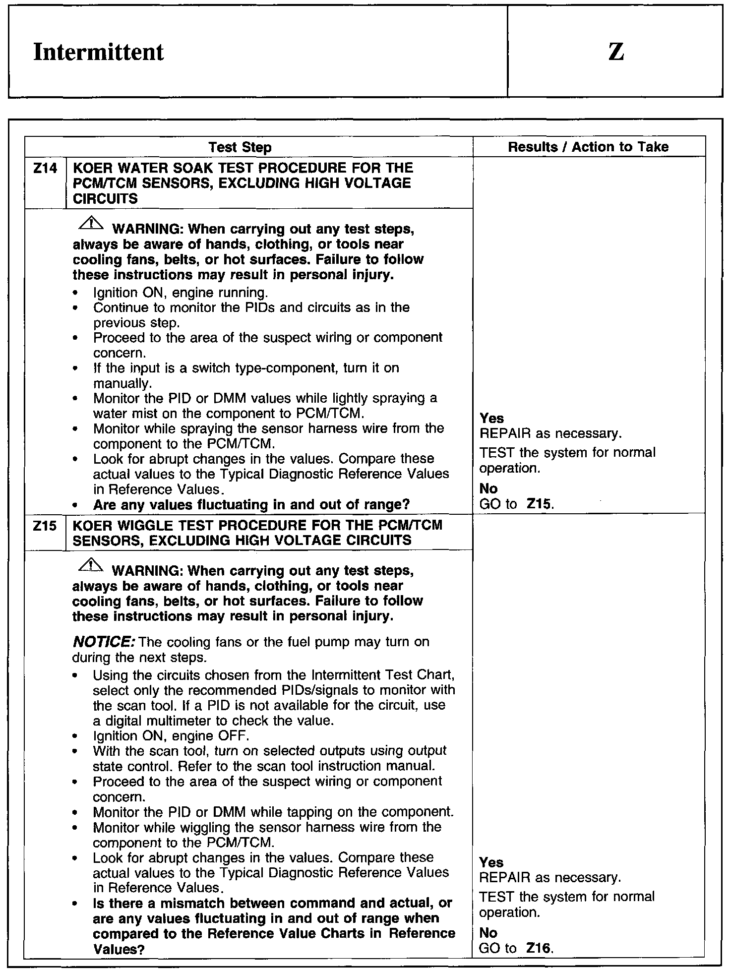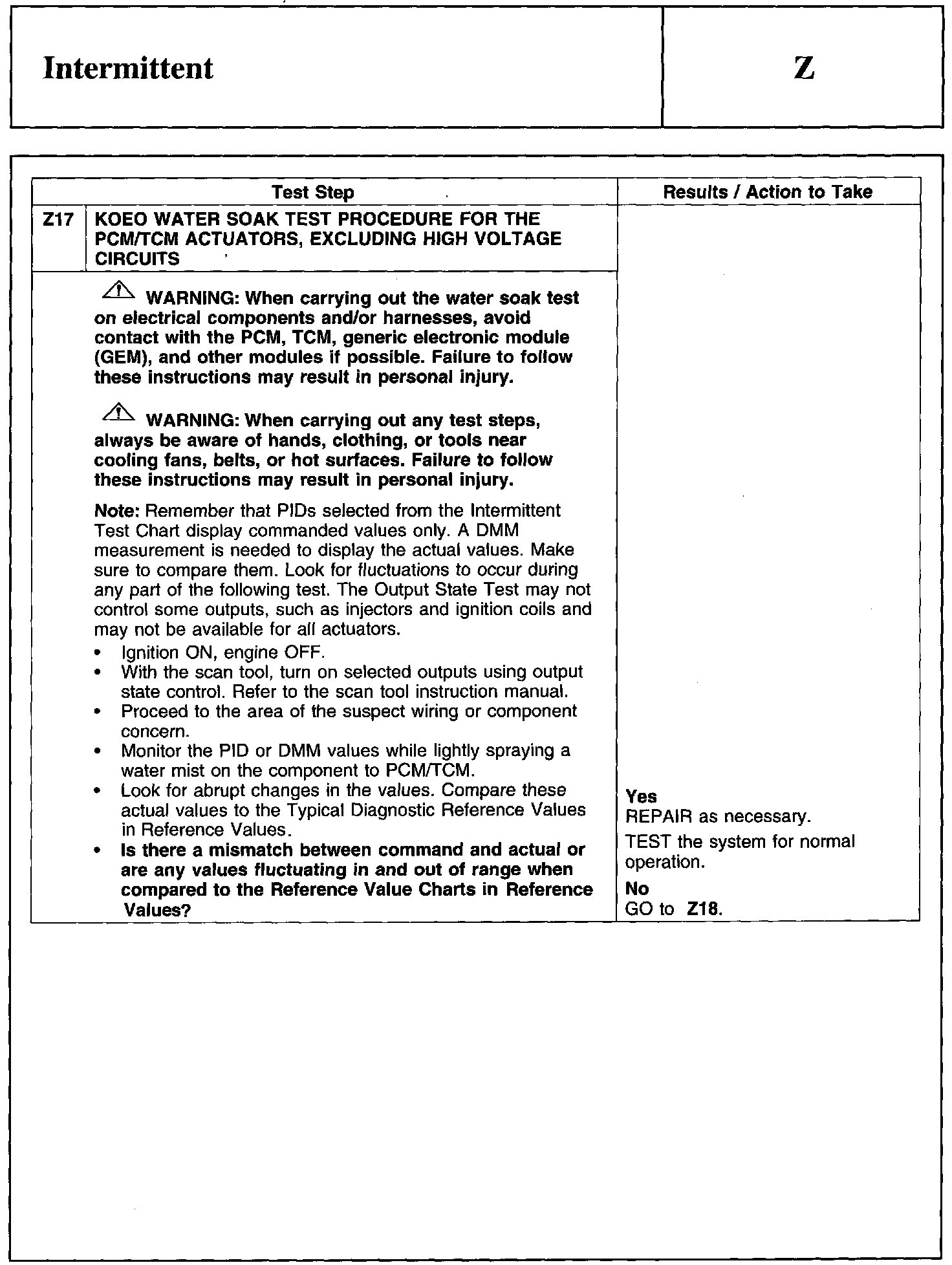 Test Z: Intermittent