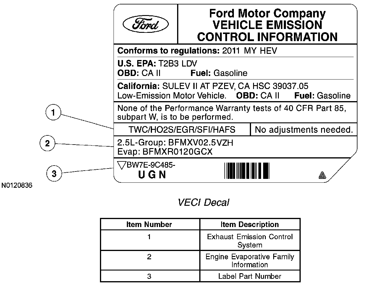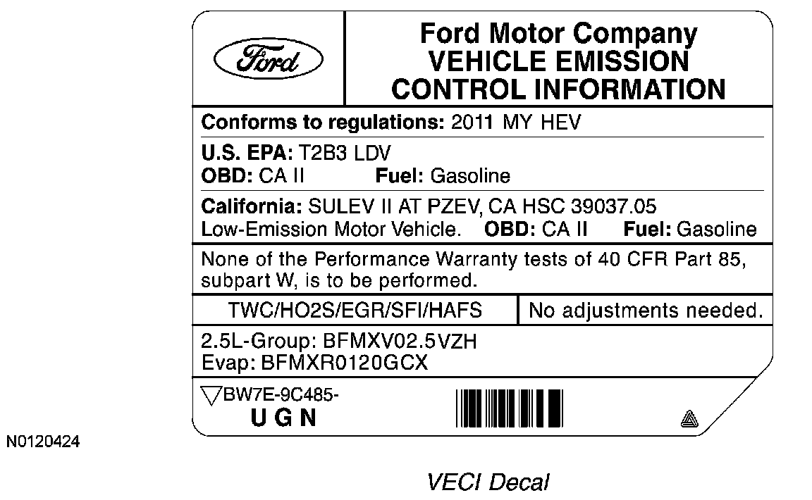 Each vehicle has a VECI decal containing emission control information that applies specifically to the vehicle and engine. The specifications on the decal are critical to repairing emissions systems.