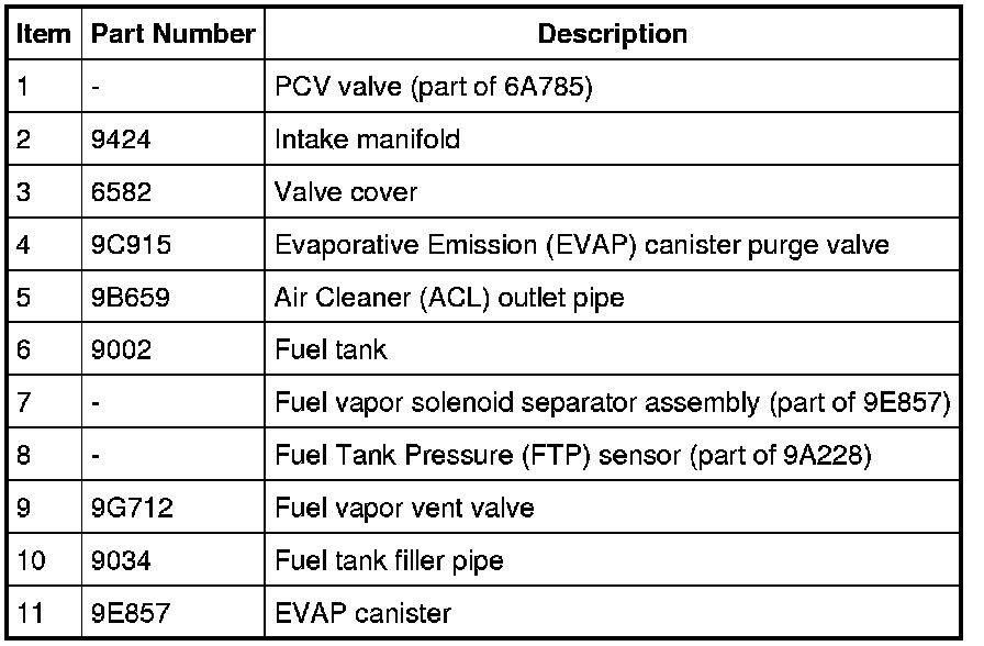 - fuel vapor tube assembly (includes the Fuel Tank Pressure (FTP) sensor and the vapor blocking valve).
