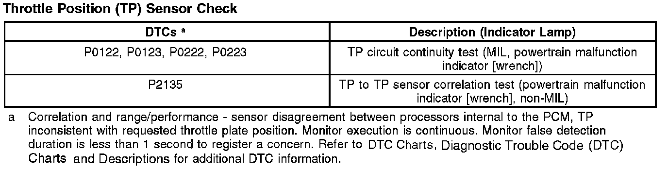 - There is one reference voltage and one signal return circuit between the PCM and the ETB. The reference voltage and the signal return circuits are shared with the reference voltage and signal return circuits used by the accelerator pedal position (APP) sensor. There are also two throttle position (TP) signal circuits for redundancy. The redundant TP signals are required for increased monitoring reasons. The first TP signal (TP1) has a negative slope (increasing angle, decreasing voltage) and the second signal (TP2) has a positive slope (increasing angle, increasing voltage). The TP2 signal reaches a limit of approximately 4.5 volts at approximately 45 degrees of throttle angle.